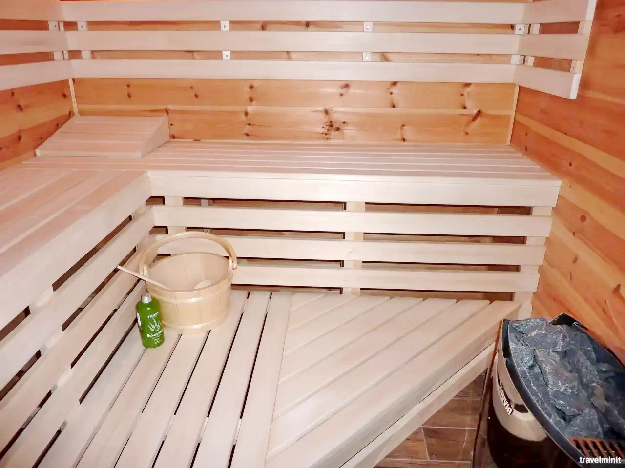 - A földszinten tágas nappali, teljesen felszerelt konyha, különálló WC, zuhanyzós fürdőszoba és egy hangulatos szauna található.
