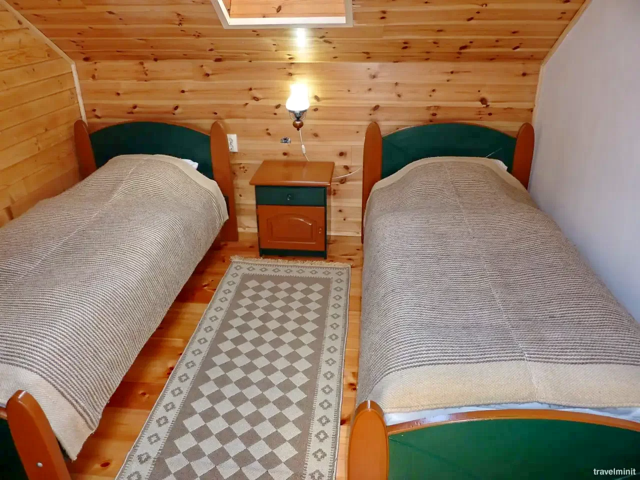 - Az emeleten négy otthonos szoba várja a vendégeket: két szoba két-két franciaággyal és egy-egy kihúzható pótággyal, valamint két szoba két-két egyszemélyes ággyal. A nappaliban egy kihúzható kanapé további két főnek biztosít helyet.