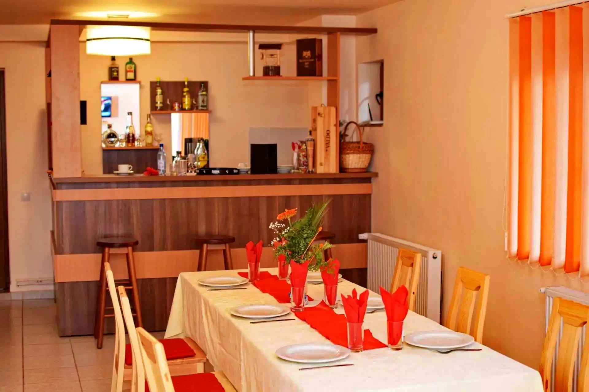 40 férőhelyes étteremmel, tadicionális erdélyi konyhával, bárral, és ingyenes wifi-vel várja kedves vendégeit.