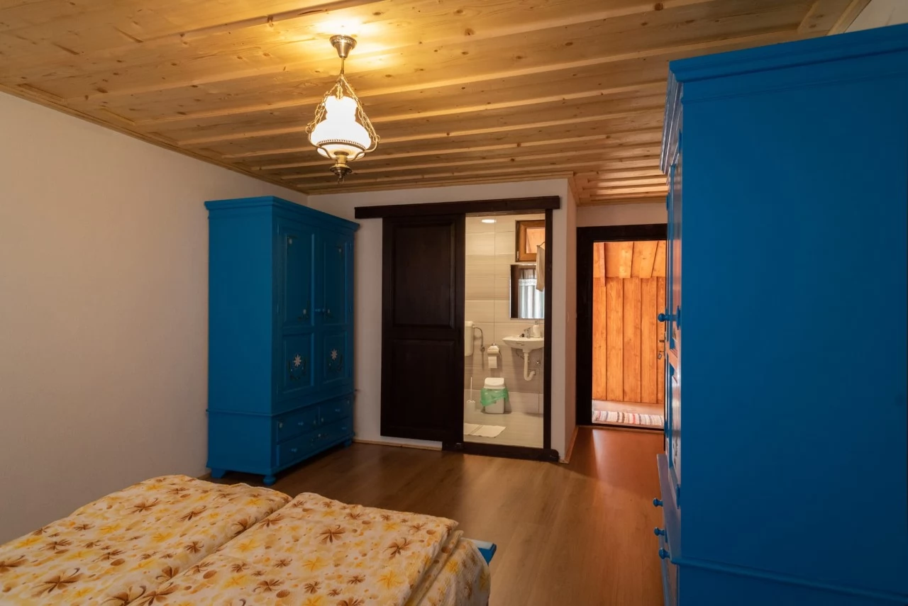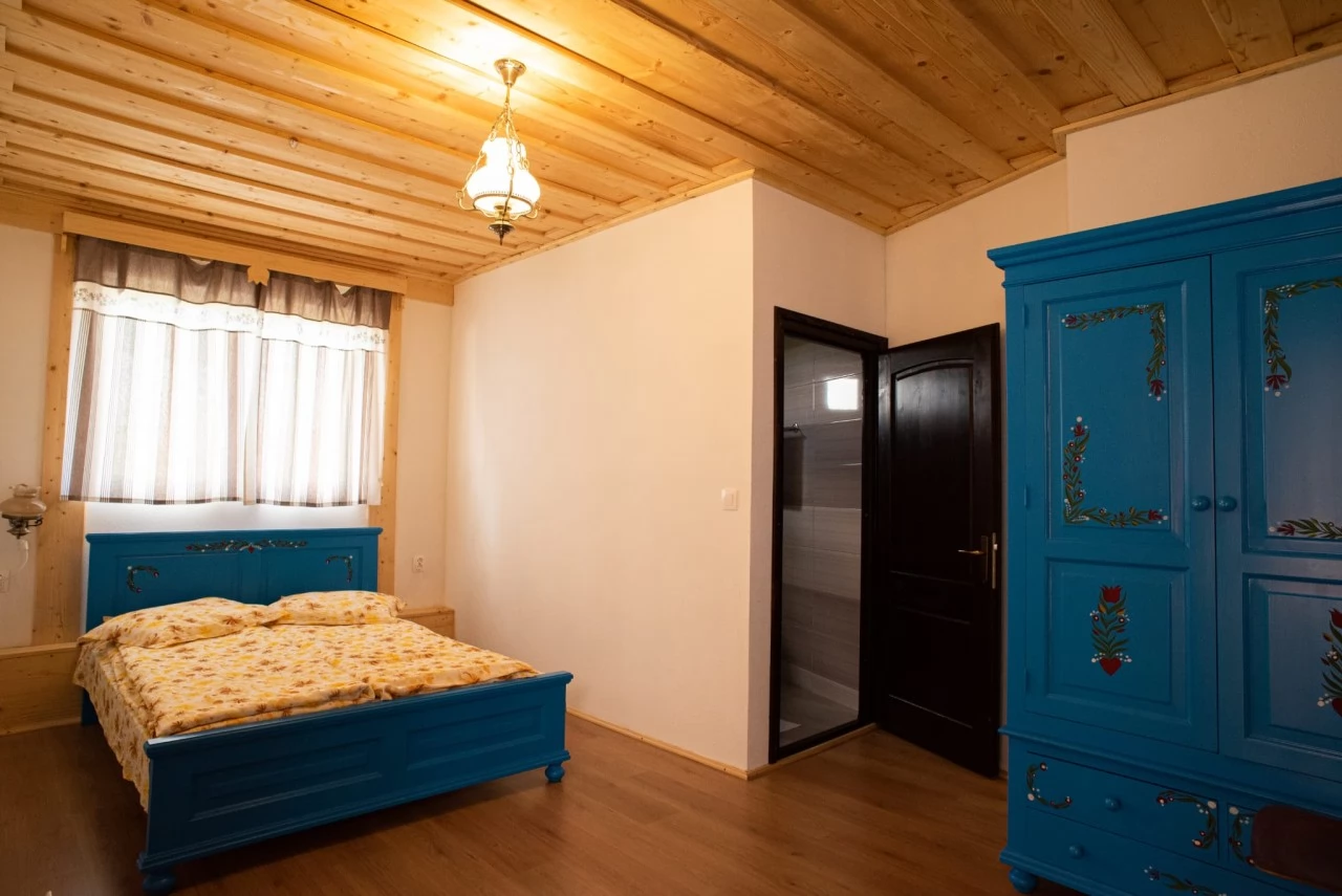 - 1 négyszemélyes (tágasabb) szoba, benne 2 franciágy, saját fürdőszobával rendelkezik