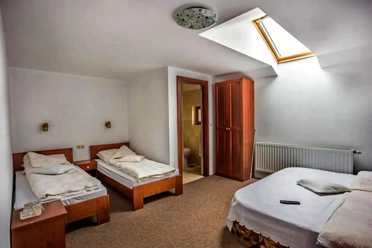 A tágas erdő közeli portán a panziót 3 különálló egymástól 10 m távolságra található 3 csillagos komforttal rendelkező épület együttes alkotja. Össesen 56 személy kényelmes elszállásolásáról gondoskodik 28 tágas és modern berendezésű saját fürdőszobás szobában.