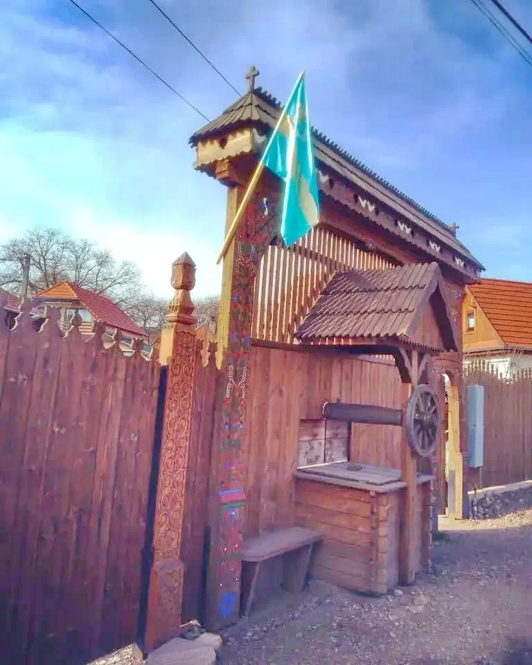 *Az udvarban különálló épület a tradicionális építésű, illetve berendezésú székely lakóház.