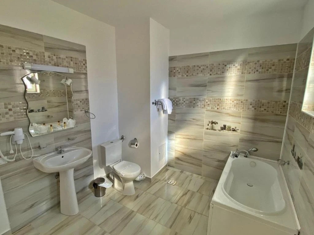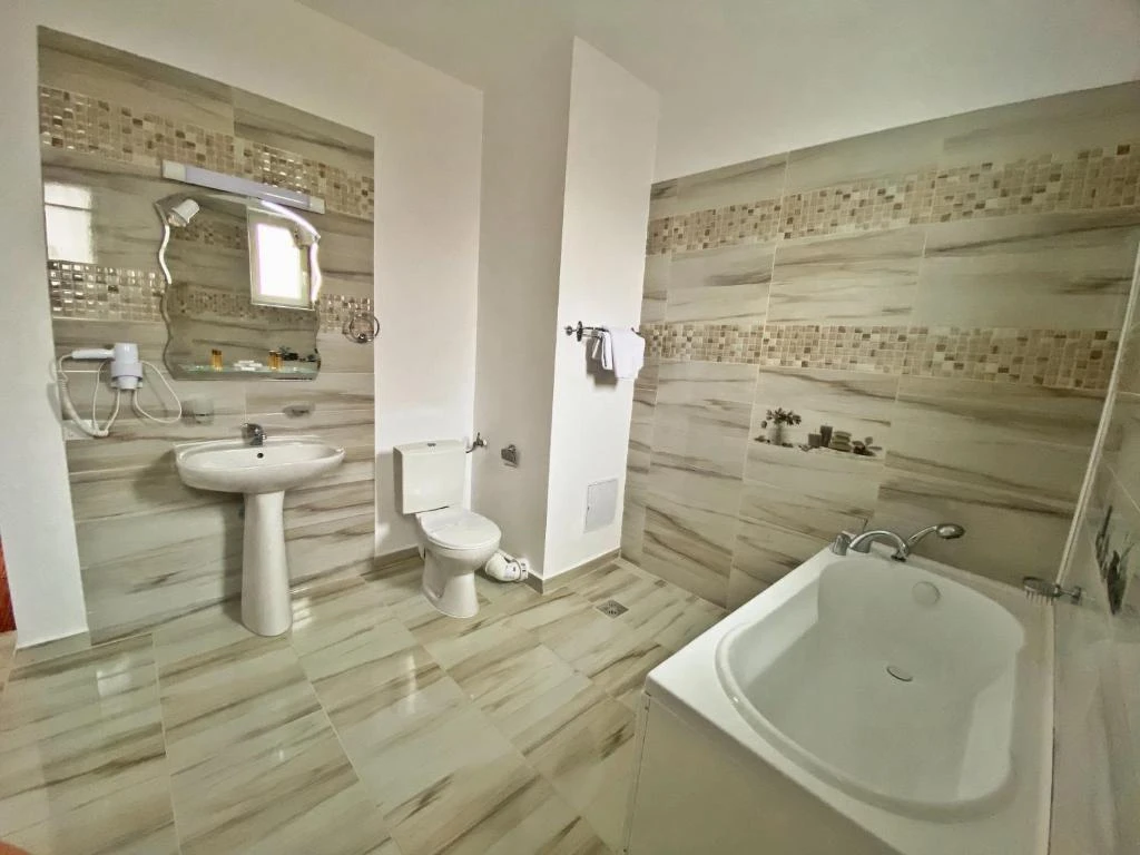 Minden szobában saját fürdőszoba zuhanyzóval/káddal, piperecikkekkel és törölközőkkel.