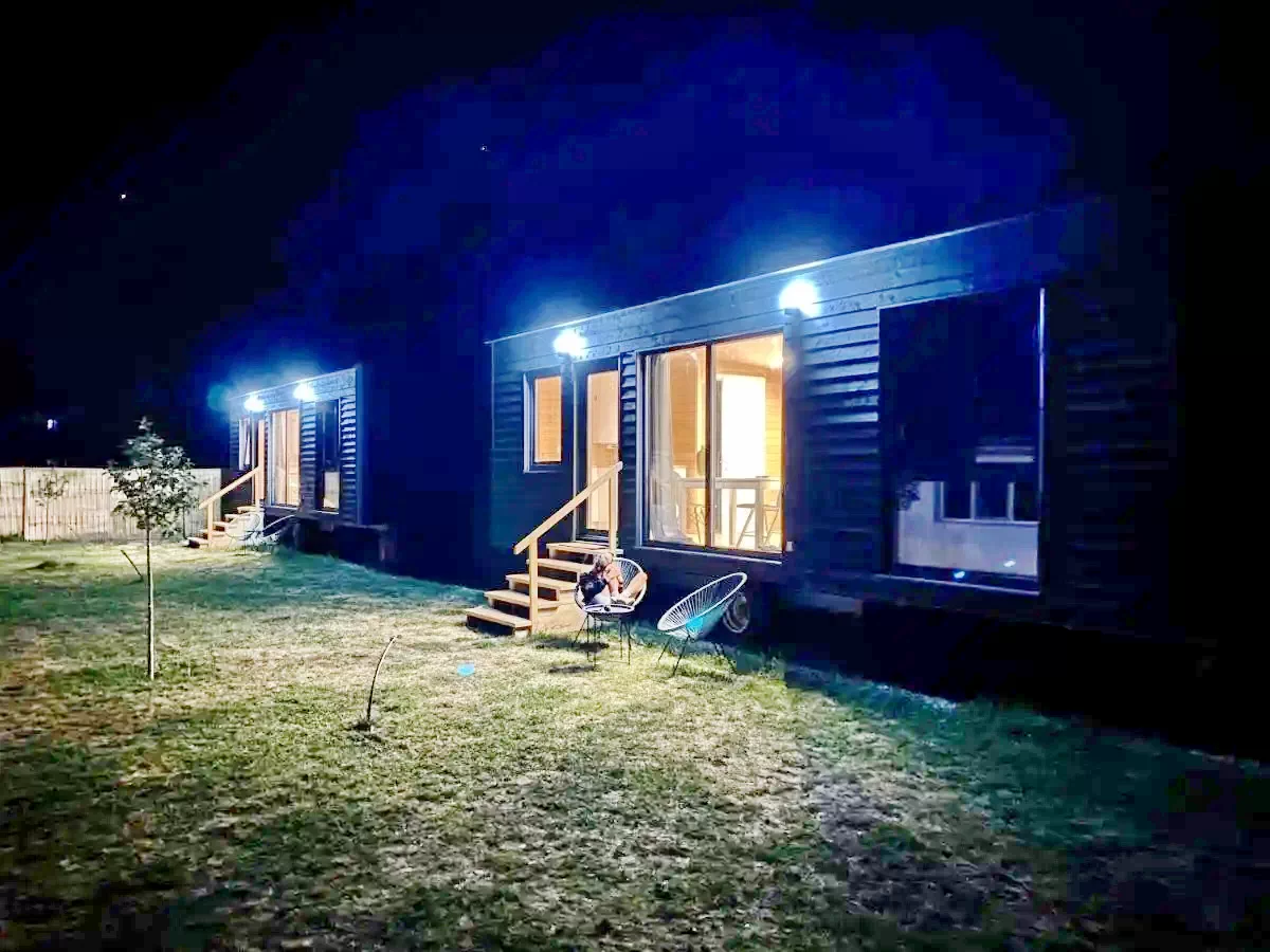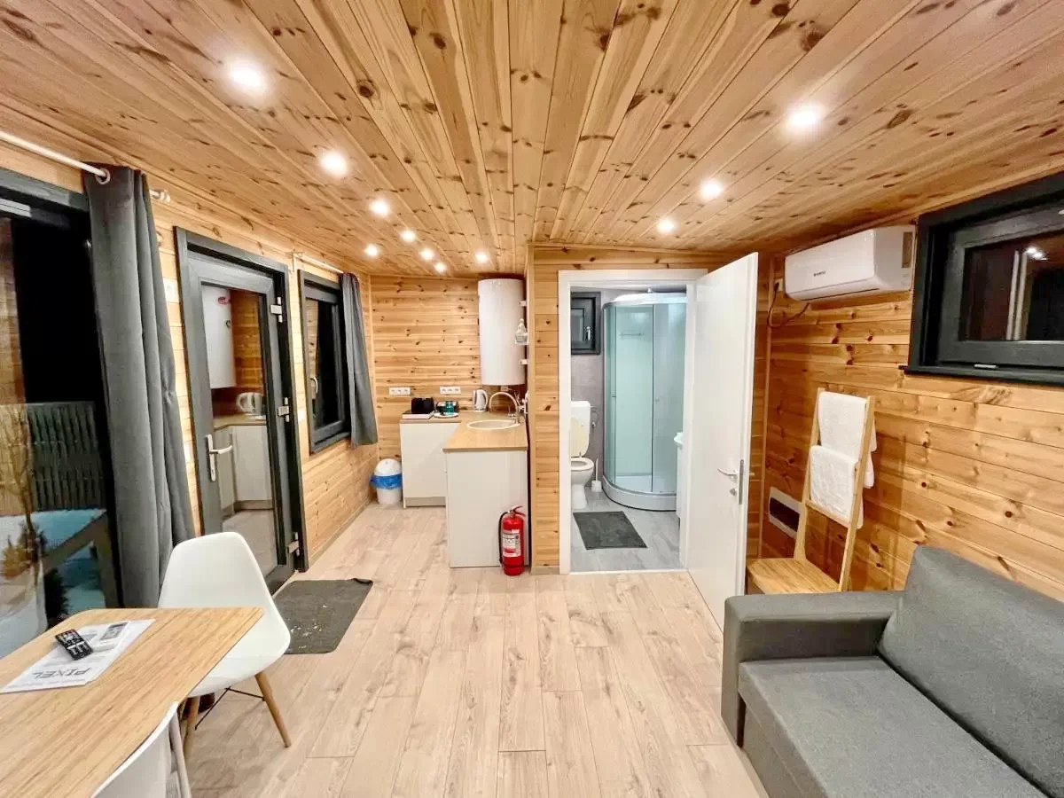 A nyaraló komplexum 5 különálló mobilházból áll és összesen 20 személy kényelmes elszállásolására alkalmas.