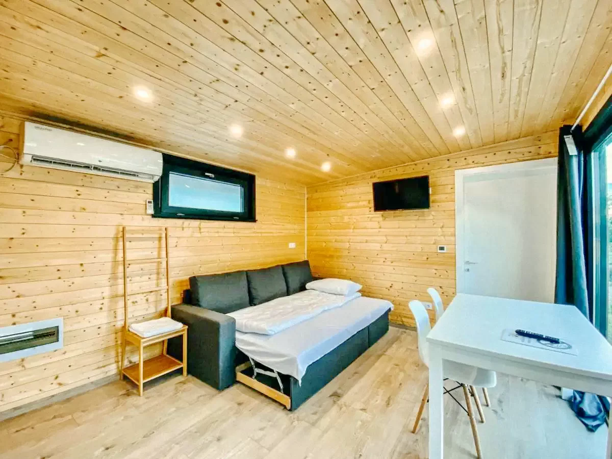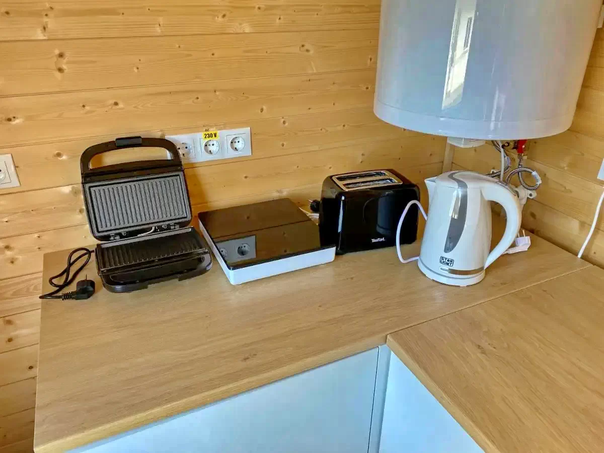 - 3 négyszemélyes két hálószobás mobilház - Mindegyik külön hálószobával, fürdőszobával, nappalival, konyhával, LED TV-vel, wi-fi internettel, klímaberendezéssel rendelkezik. Mindhárom mobilház egyenként 33 négyzetméter alapterületű és 4 fő részére kínál kényelmes szállást. A nyaraló (3 mobilházzal) összesen 12 fő részére biztosít minőségi szállást.