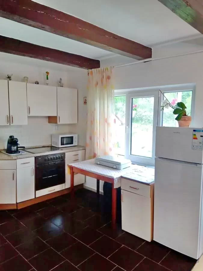 - A vendégház önellátásra alkalmas, teljesen felszerelt konyhával rendelkezik a földszinten, amely minden szükséges eszközzel ellátott: edények, evőeszközök, kávéfőző, mikrohullámú sütő, tűzhely, elektromos sütő, hűtőszekrény, mosogatógép, kenyérpirító, szendvicssütő, elektromos teafőző és eszpresszógép.