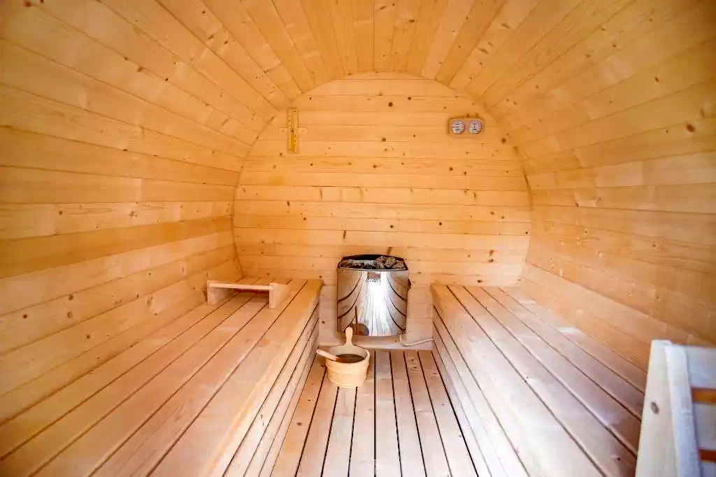 - A fedett tűzrakó terasz kiváló helyszín baráti beszélgetésekhez, közös sütögetéshez, míg a szauna és dézsa a teljes kikapcsolódást biztosítja a hideg esték során.