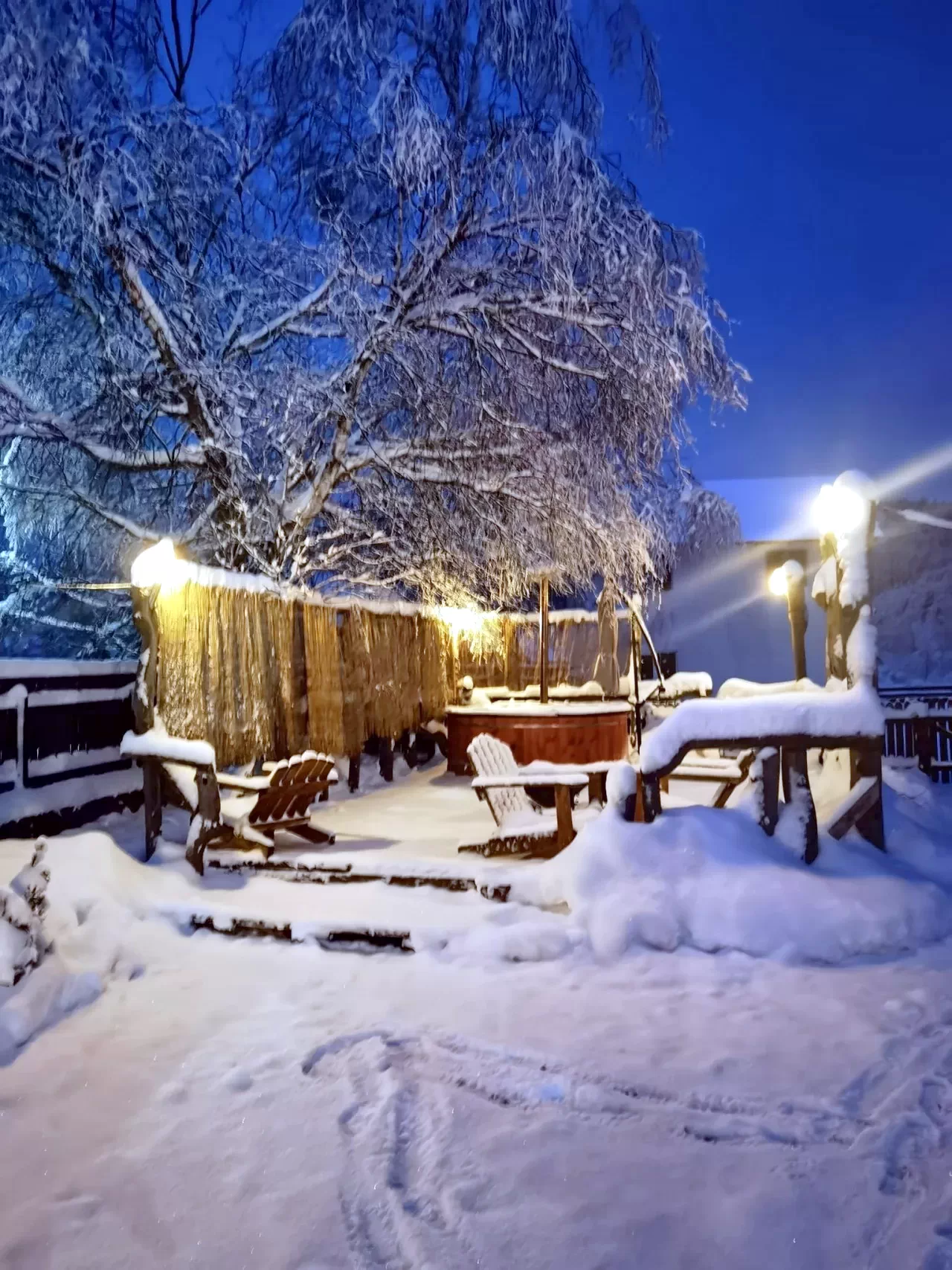 - Kert-udvar éjszakai világítással