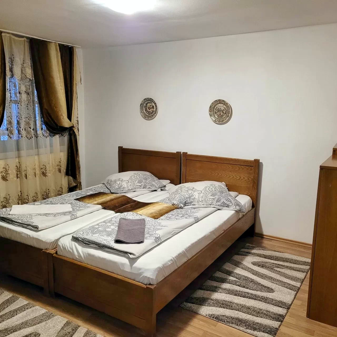- 1 szoba 2 külön ággyal és egy franciággyal rendelkezik