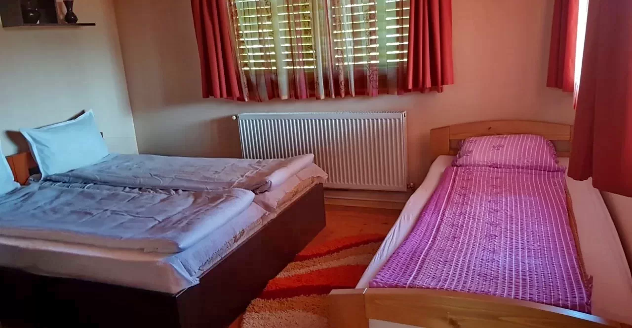 Kényelmes szállást biztosít 11 személy számára 2 és 3 ágyas szobákban.