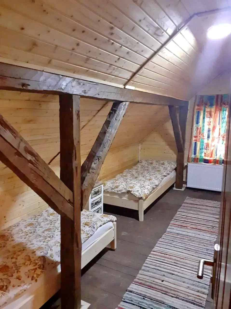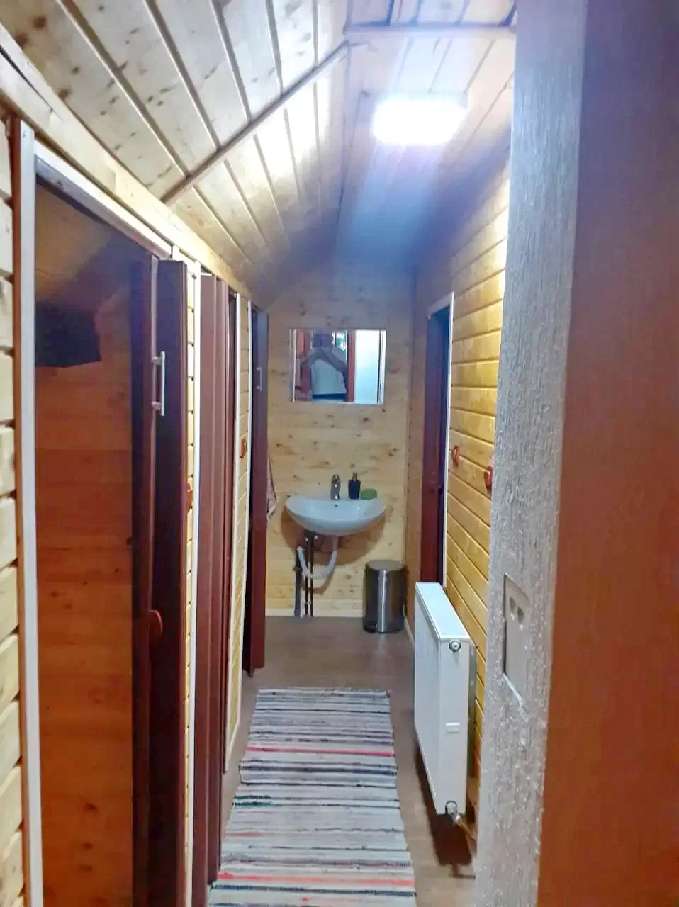 Az emeleten három hálószoba található, egyenként 6 ággyal, 3 WC és 3 zuhanyzó található a bejárattal az előszobából.