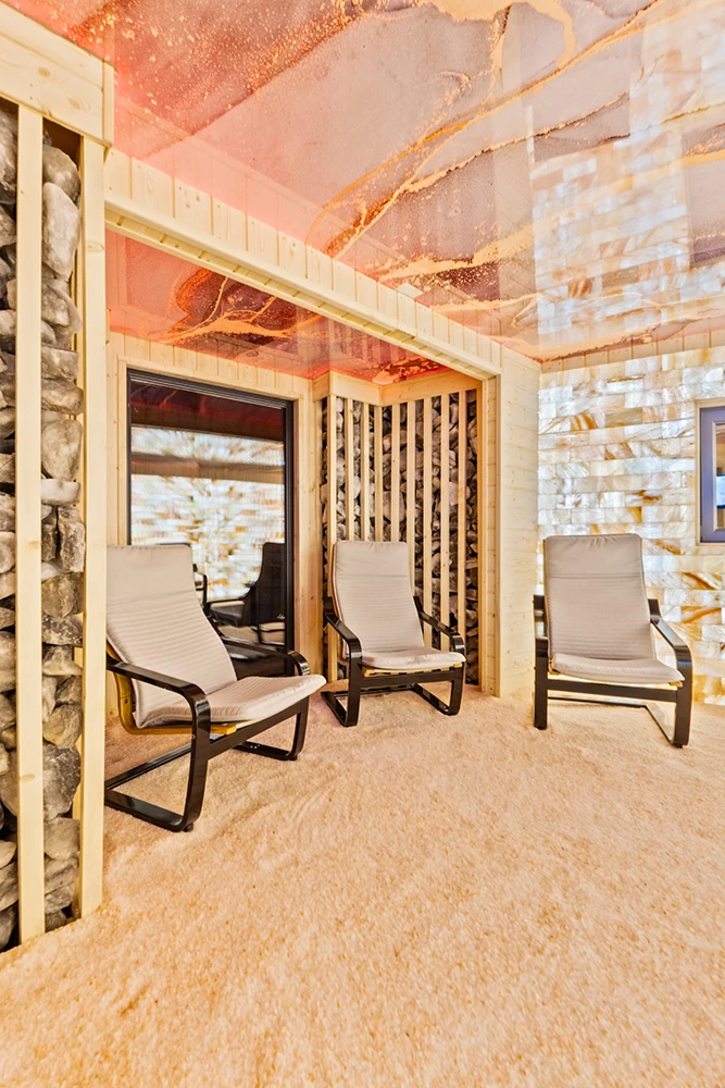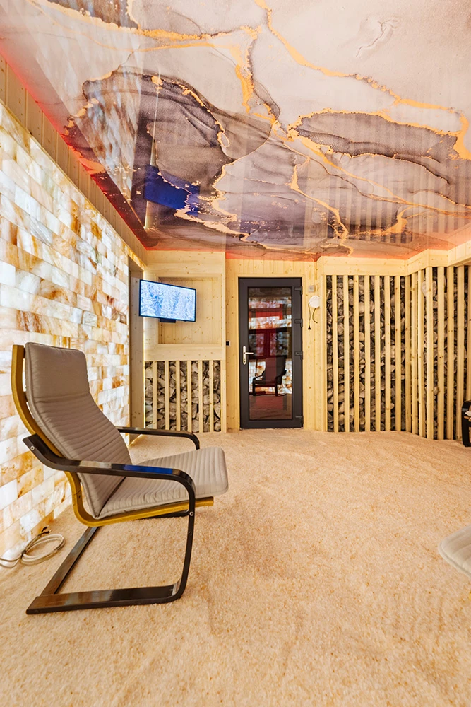 Szauna és salina (sószoba), amelyek nemcsak a pihenést, hanem a testi-lelki felfrissülést is szolgálják.