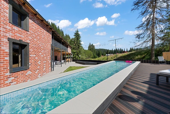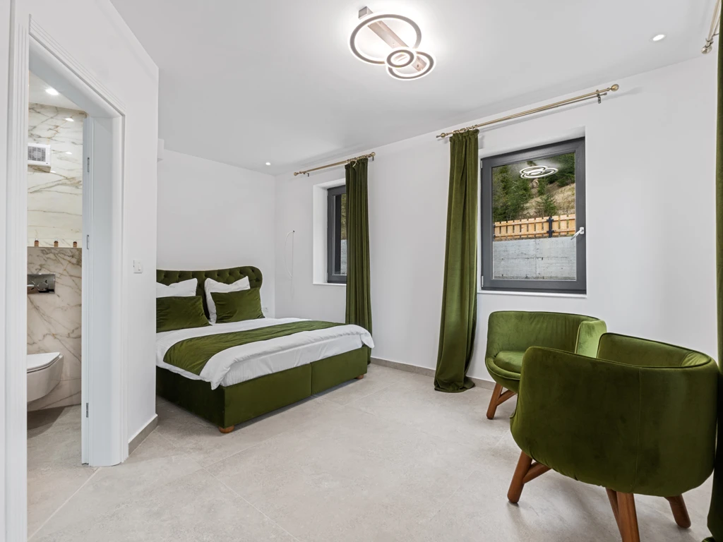 House szálláshelyünk egy luxus hegyi panzió, amelyet 2023-ban nyitottak meg, hogy vendégei a természet közelségében, minden igényt kielégítő környezetben pihenhessenek. A szállás 10 modern, ízlésesen berendezett szobával és 2 apartmannal rendelkezik, mindegyik saját fürdőszobával és panorámás kilátással a hegyekre, patakokra és a panzió körüli természeti tájra.