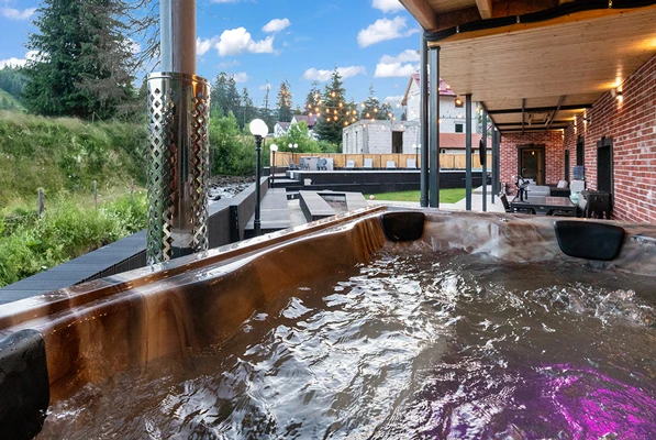 Szobák alapterülete: 20–30 m², panorámás kilátással a hegyekre, a patakra vagy a medencére.