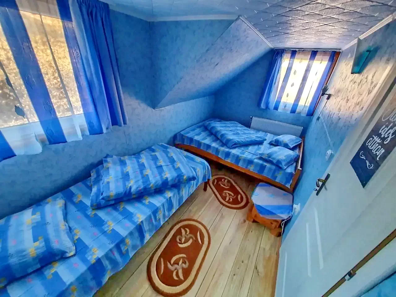 2 db négyfős szoba: 2 franciaágy szobánként (4-4 fő) A házban 4 fürdőszoba található (2 toalett a földszinten, 1 fürdőszoba az emeleten két zuhanyzóval), valamint kiváló minőségű ágynemű biztosítja a vendégek kényelmét.