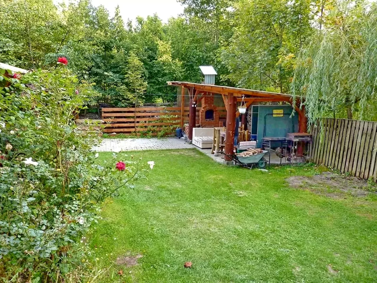 Fedett söröző (filagória) és terasz: Pihenéshez és étkezéshez.