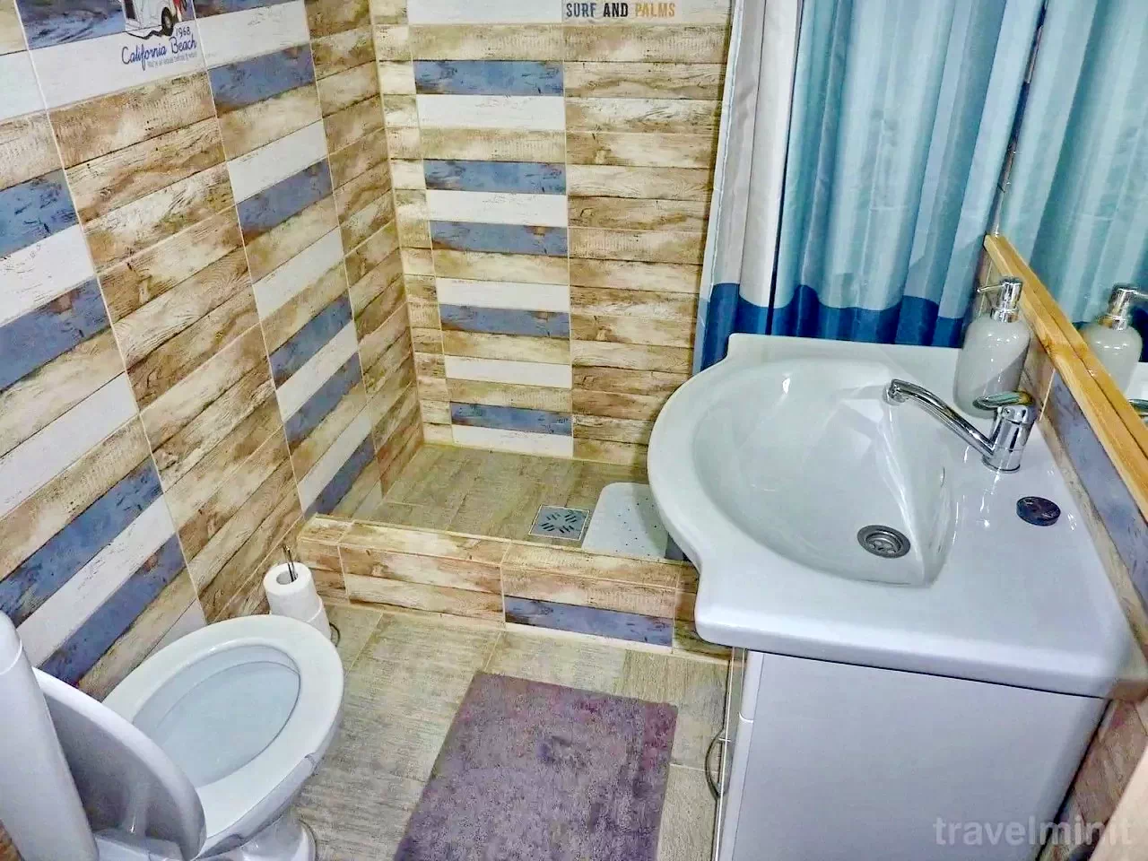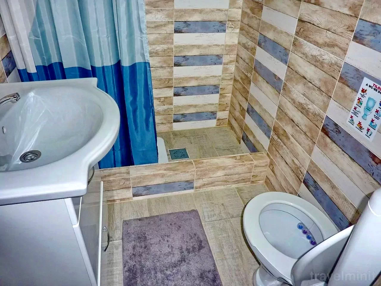 Fürdőszoba: Zuhanyzóval, WC-vel, kézmosóval.