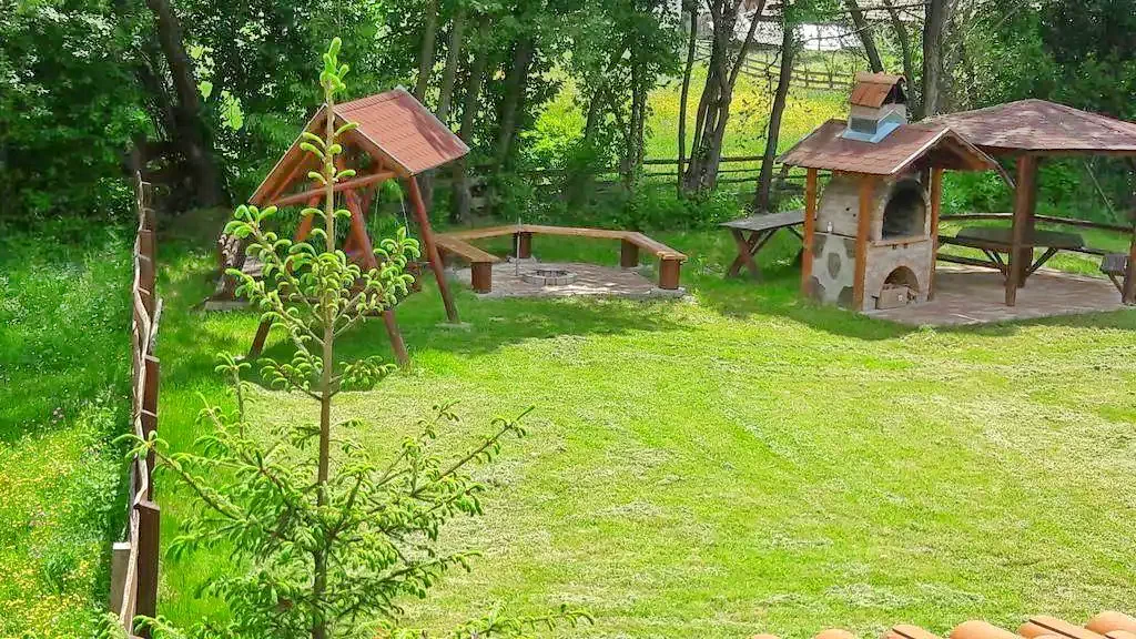 - Az 500 m²-es udvaron fedett söröző (filagória) és kerti kiülő várja a pihenni vágyókat, ahol a hinta a gyermekek és felnőttek örömére szolgál. A szabadtéri sütés-főzés szerelmesei a grillkemencét, bográcsozót vagy tűzrakó helyet használhatják, míg a 600 méterre található lovarda lovaglási lehetőséget kínál.