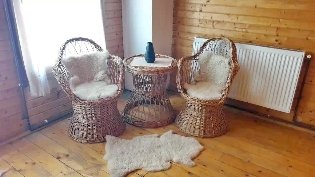 - Télen a 14 km-re lévő sípálya csábítja a sportkedvelőket, nyáron pedig a környék túraútvonalai és patakjai kínálnak kalandot. Esténként a nappali TV-je parabolaantennával biztosít szórakozást, miközben a kandalló pattogása meghitt hangulatot teremt.
