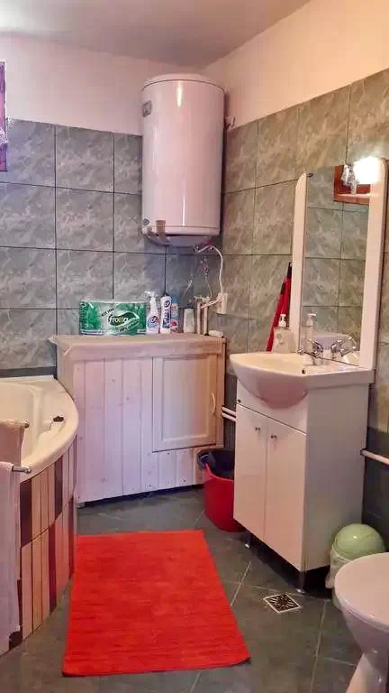 - Fürdőszoba: Fürdőkáddal, WC-vel és kézmosókagylóval.