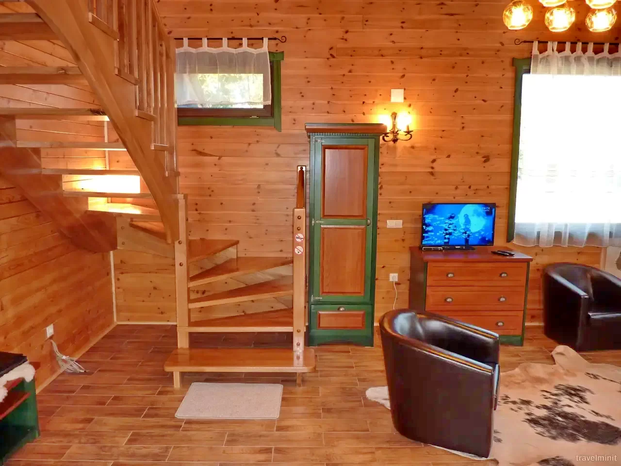 - A földszinten tágas nappali, teljesen felszerelt konyha, különálló WC, zuhanyzós fürdőszoba és egy hangulatos szauna található.