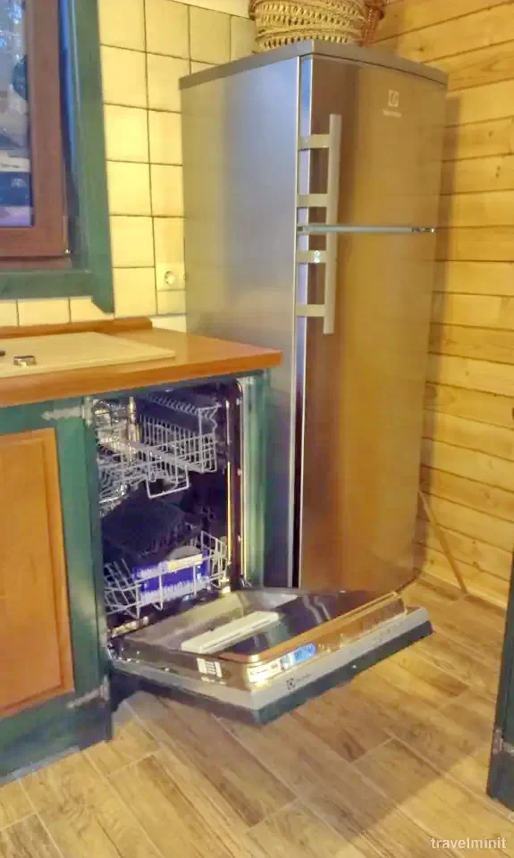 - Gáz- és villanytűzhely, mosogatógép, hűtőszekrény, mikrohullámú sütő, kenyérpirító, kávéfőző, teafőző, edények és evőeszközök.