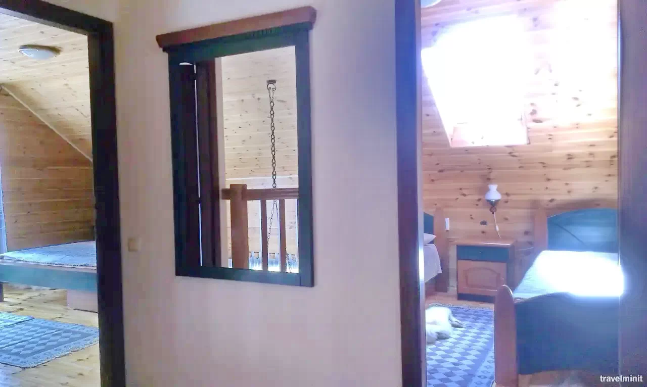 - Az emeleten négy otthonos szoba várja a vendégeket: két szoba két-két franciaággyal és egy-egy kihúzható pótággyal, valamint két szoba két-két egyszemélyes ággyal. A nappaliban egy kihúzható kanapé további két főnek biztosít helyet.
