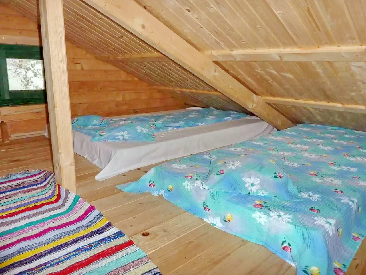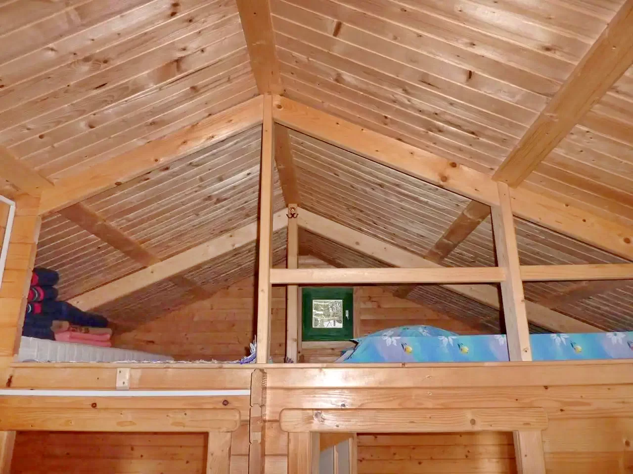 A kisházakhoz nappali, konyharész főző alkalmatossággal, fürdőszoba és két szoba tartozik. Mindkét szobában egy-egy kétszemélyes franciaágy található. A két szoba galériaszerűen össze van födve. Az ilymódon kialakított térben 4 gyerek,vagy 2 felnőtt tud aludni.