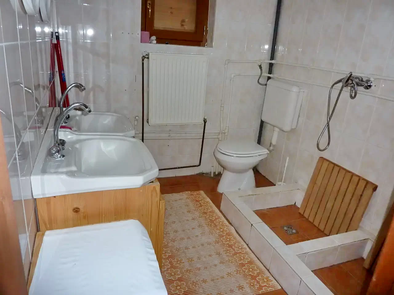 Fürdő II: két zuhanyzó + vízöblítős WC + kézmosókagyló