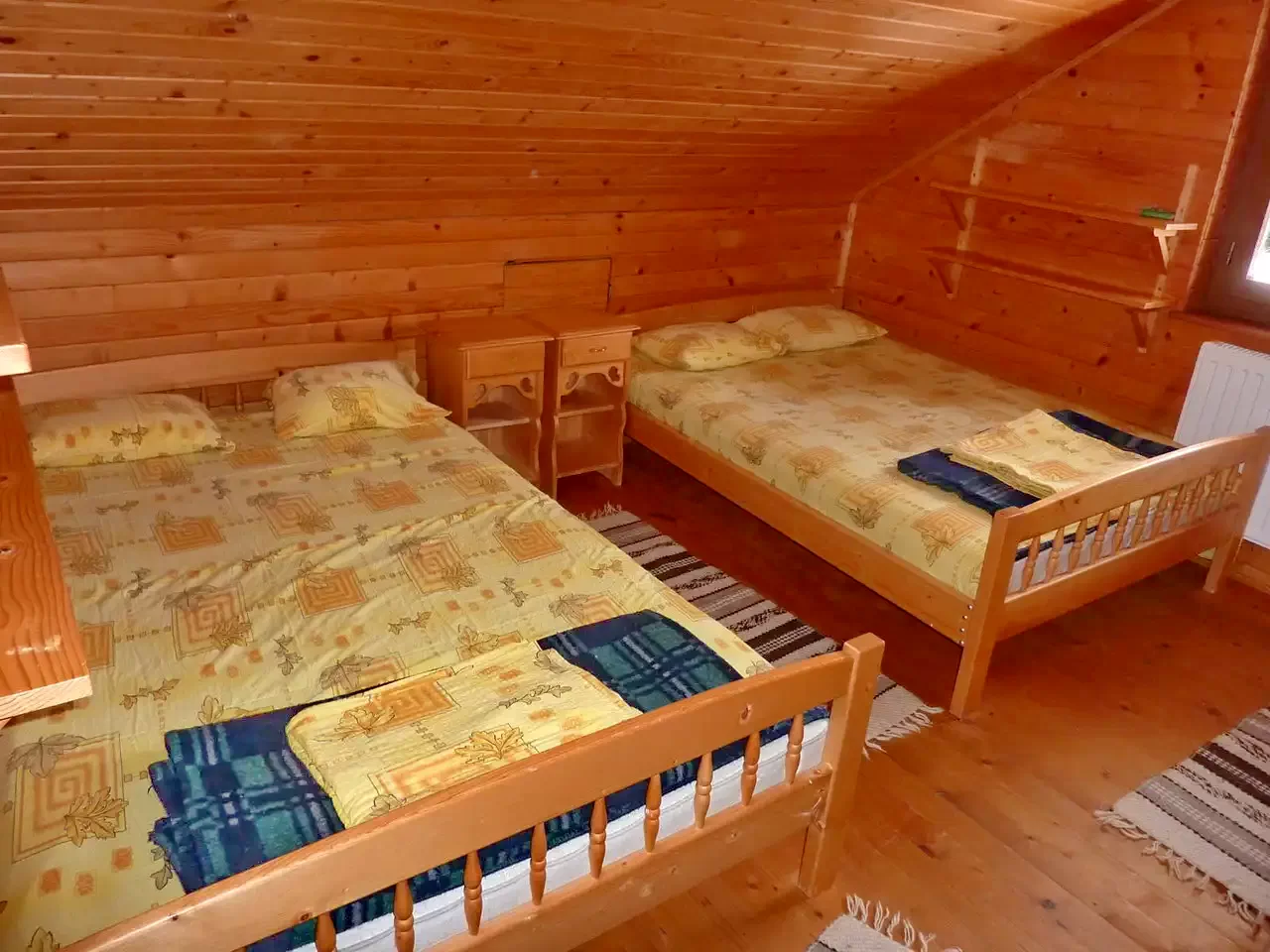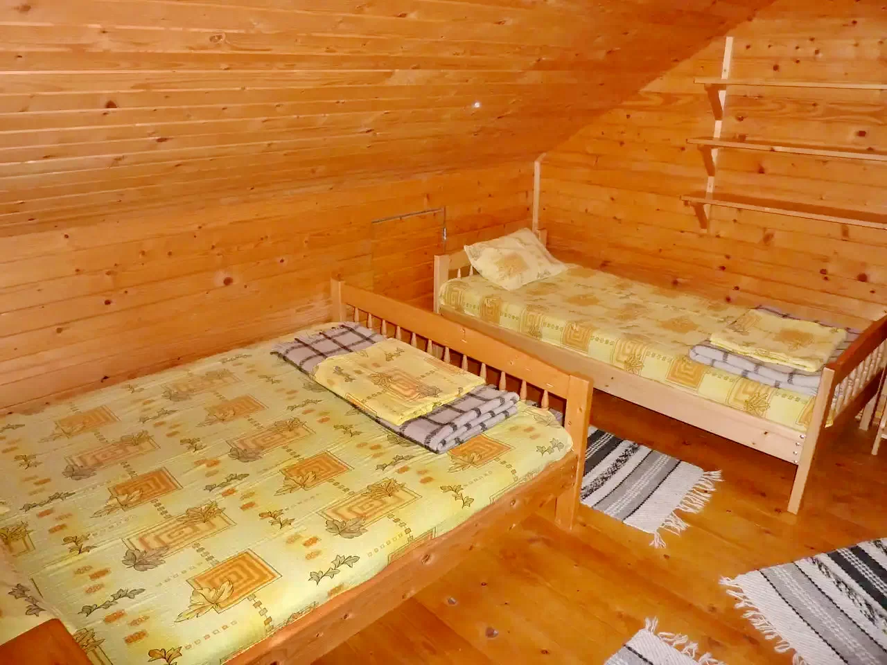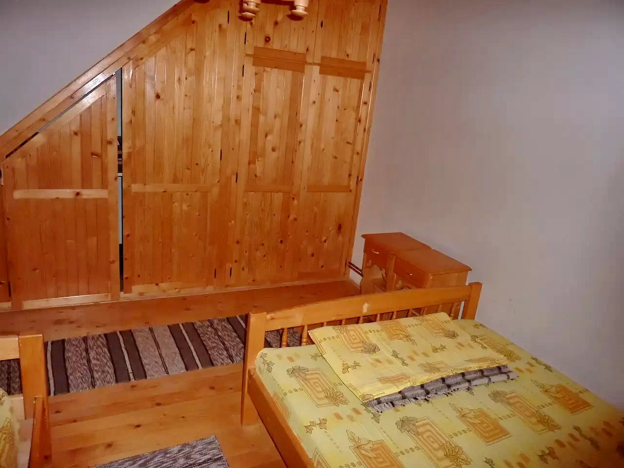 Az egyik szobában egy kétszemélyes ágy található. Ezen a szobán keresztül lehet bejutni a második szobába, melyben egy kétszemélyes ágy és egy egyszemélyes ágy található. A következő szobában két farnciaágy van. Ezen az emeleten egy fürdőszoba áll rendelkezésre.