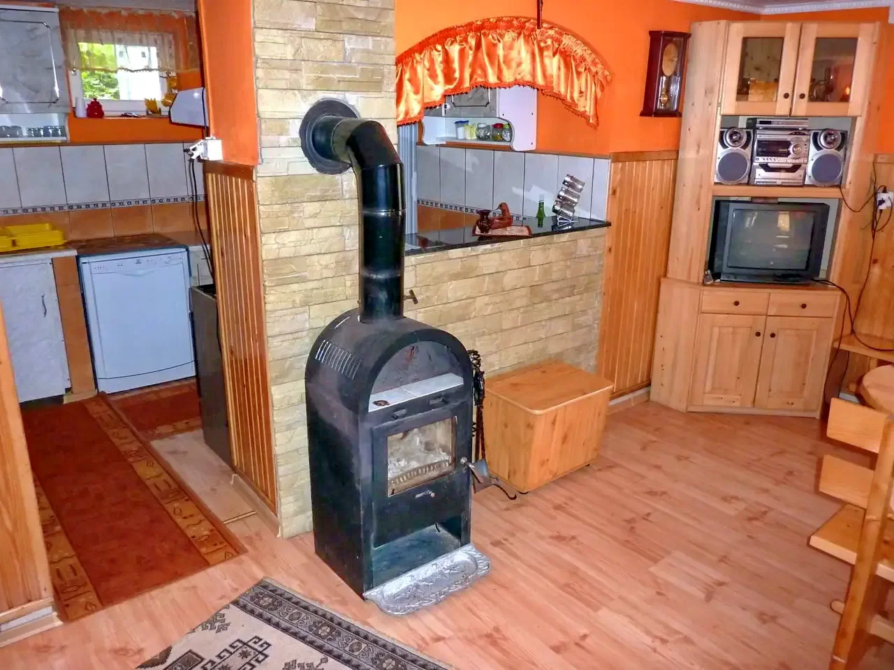 - A meleg vizet elektromos és fatüzelésű rendszer biztosítja, az áramellátás vezetékes, és mobil térerő is van.