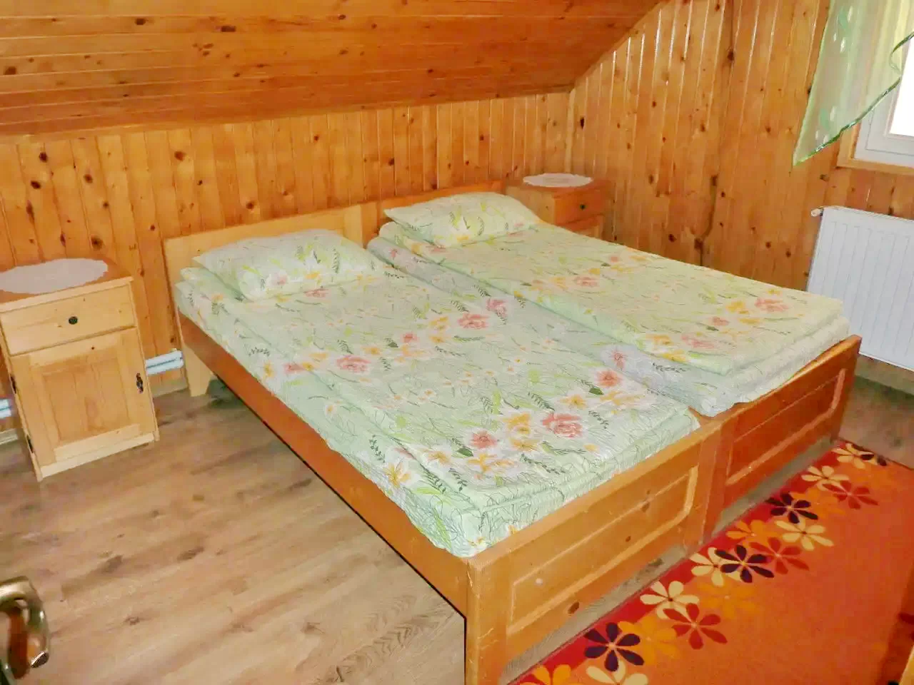 - Manzárd: Egy szoba két kétszemélyes ággyal, fürdőszoba (zuhanyzókád, WC, kézmosókagyló).