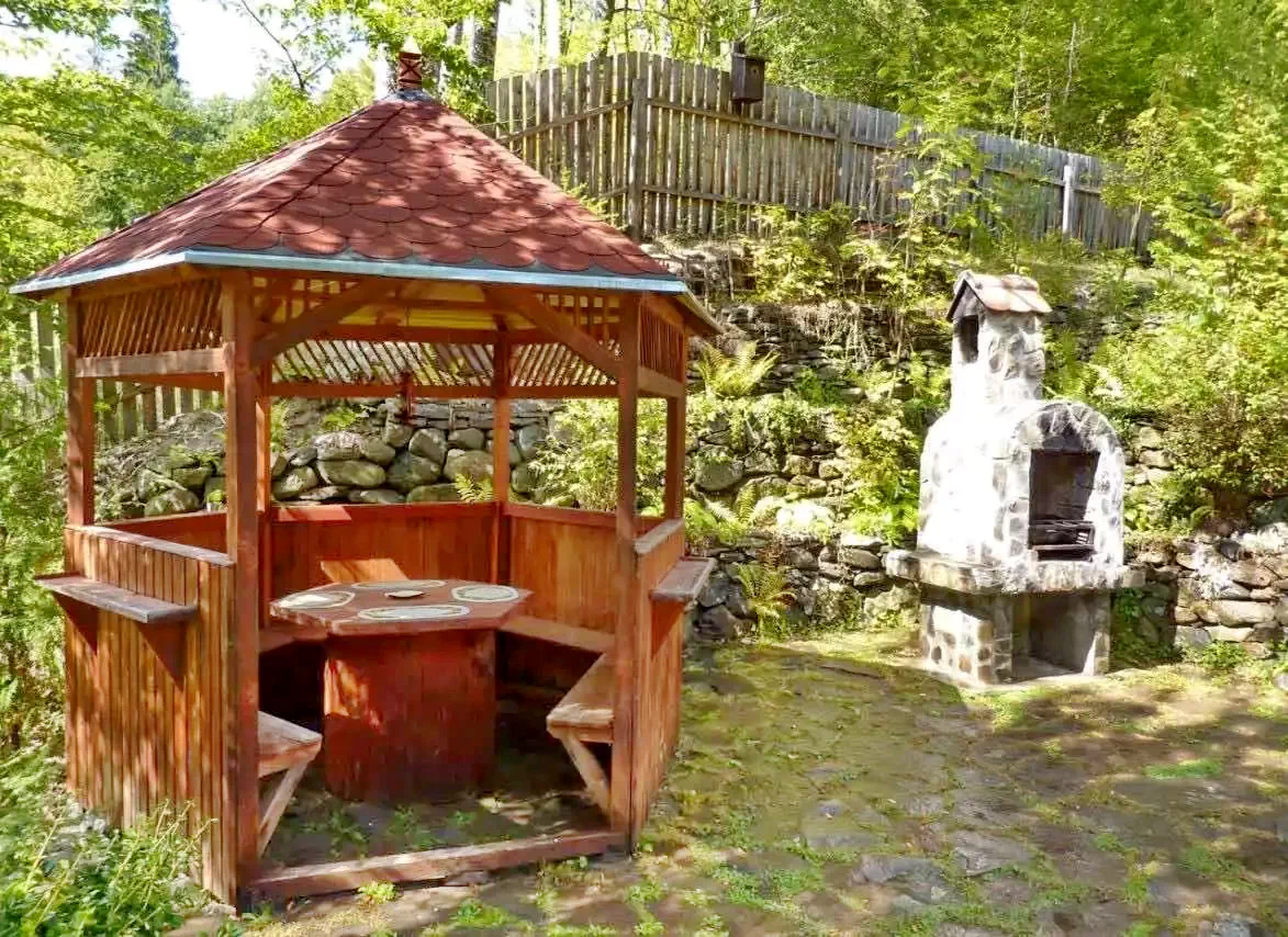 - Az udvarban fedett filagória, kerti pavilon, terasz, grillsütő, sütőtárcsa, üst és szabad tűzhely található, ahol a szabadtéri főzés szerelmesei kiélhetik kreativitásukat.