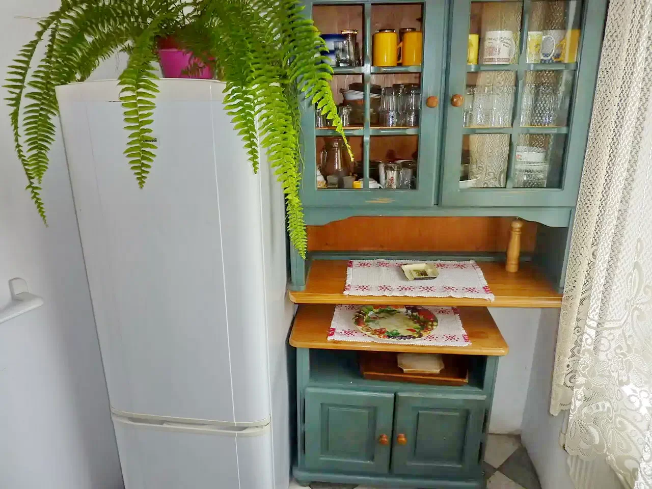 - Teljesen felszerelt konyha (gáztűzhely, hűtőszekrény, mikrohullámú sütő, kávéfőző, edények, evőeszközök)