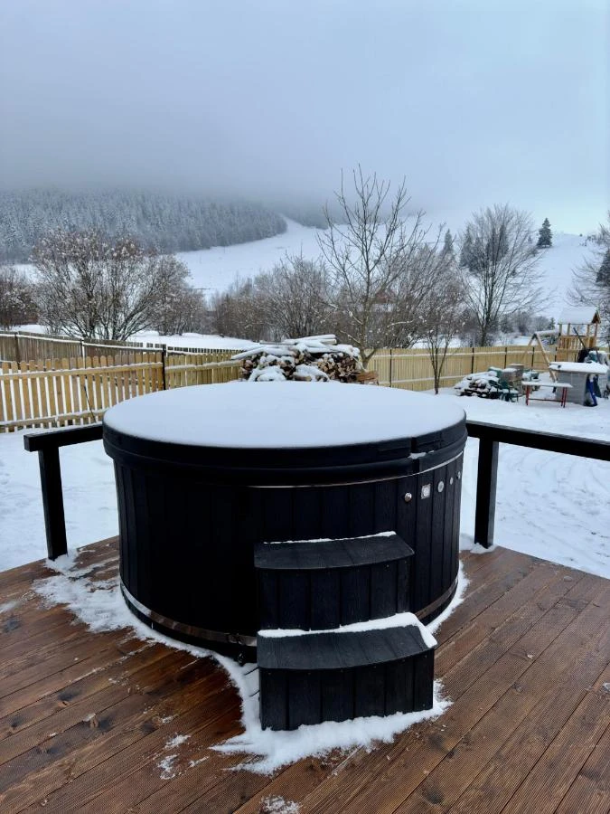 Szállás Marosfő Villa | Kilátással a környező hegyekre; Wellness: Sós vizes dézsa és szauna; Wi-Fi; Vendégkonyha; Nappali; Ebédlő; Játszószoba; Terasz; Nyárikert; Pavilon; Grill, Játszótér; Parkoló | 700m Marosfő Greces Sípálya, 44km Gyilkos-tó