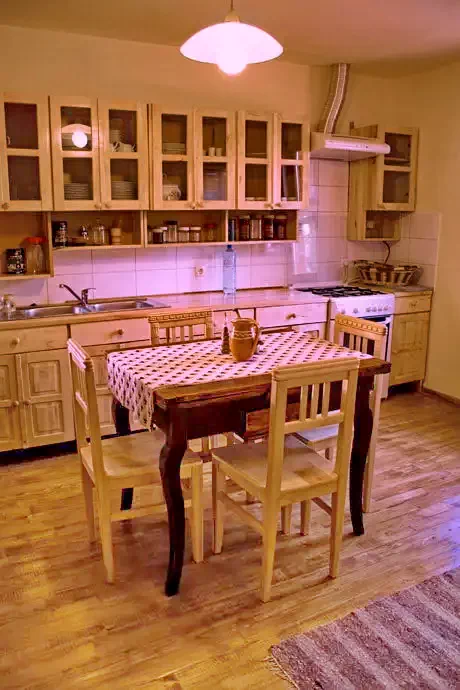 - A szálláshelyhez egy ebédlő, társalgó, borospince és egy teljesen felszerelt konyha is tartozik. A berendezés polgári és paraszti stílusú bútorokkal gazdagítja a villa egyedi, hagyományos jellegét.