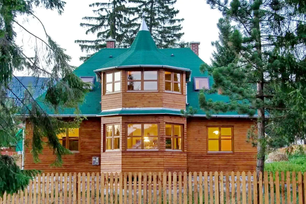 - A villa egy portikuszos, teljes egészében fából készült üdülőház, amely felidézi a két világháború közötti üdülőhelyek hangulatát.