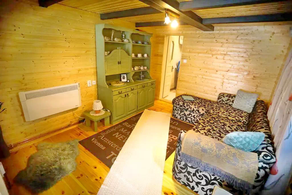 - A földszinten egy kihuzhatos kétszemélyes kanapé, fürdőszoba, ebédlő, konyha és kisterasz