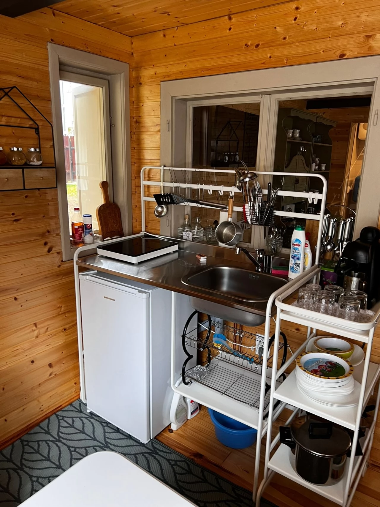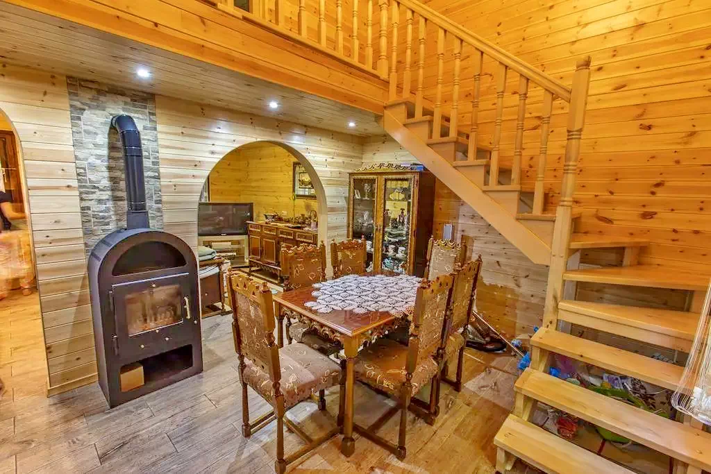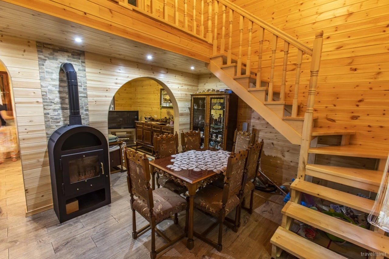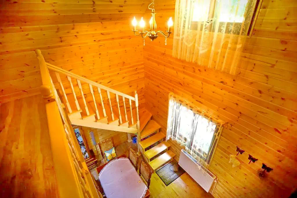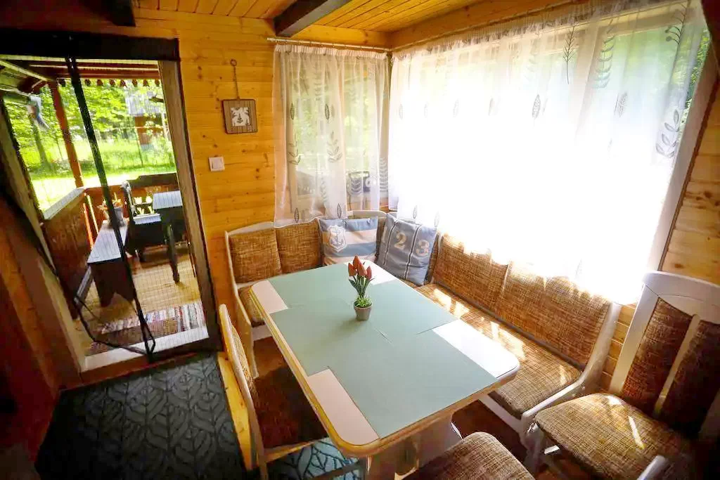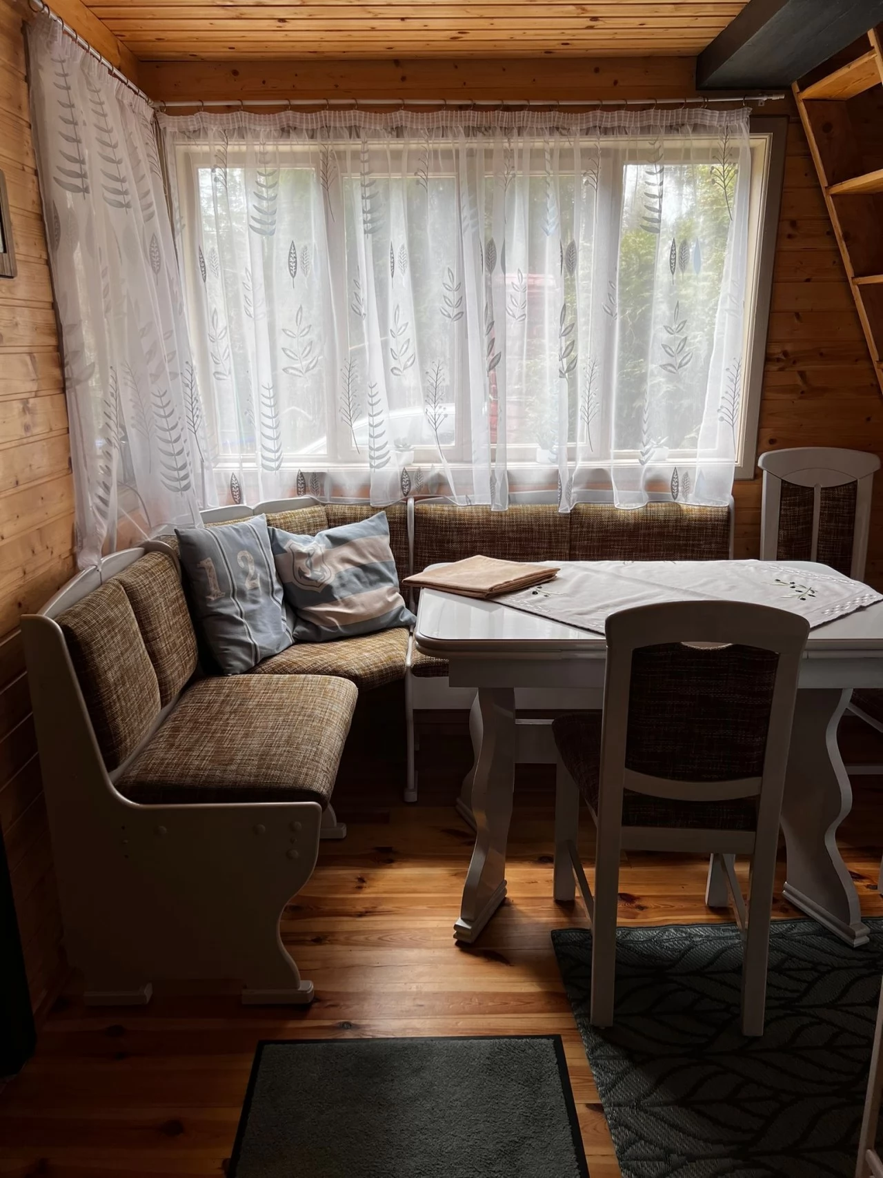 - A földszinten egy kihuzhatos kétszemélyes kanapé, fürdőszoba, ebédlő, konyha és kisterasz