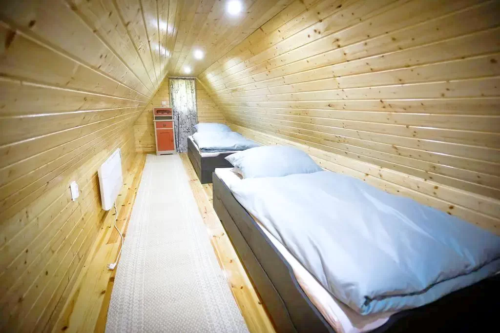 - A galériás emelet két hálószobával rendelkezik, az egyikben franciaágy a másikban 2 db egyszemélyes ágy található.