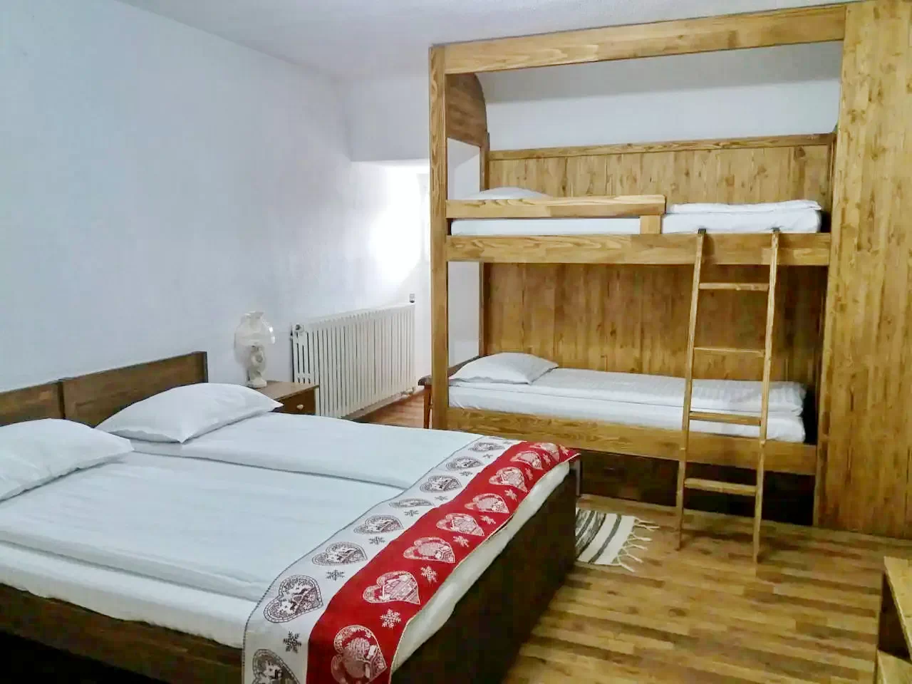 - két szoba az emeleten, mindegyikben franciaágy és 1 emeletes ágy (2 egyszemélyes ágy).