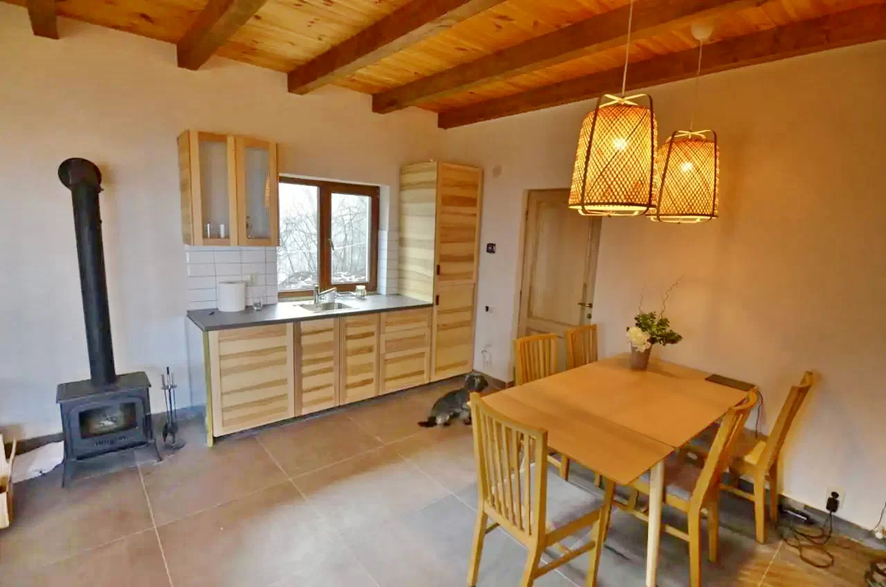 - közös nappali fatüzelésű kályhával,