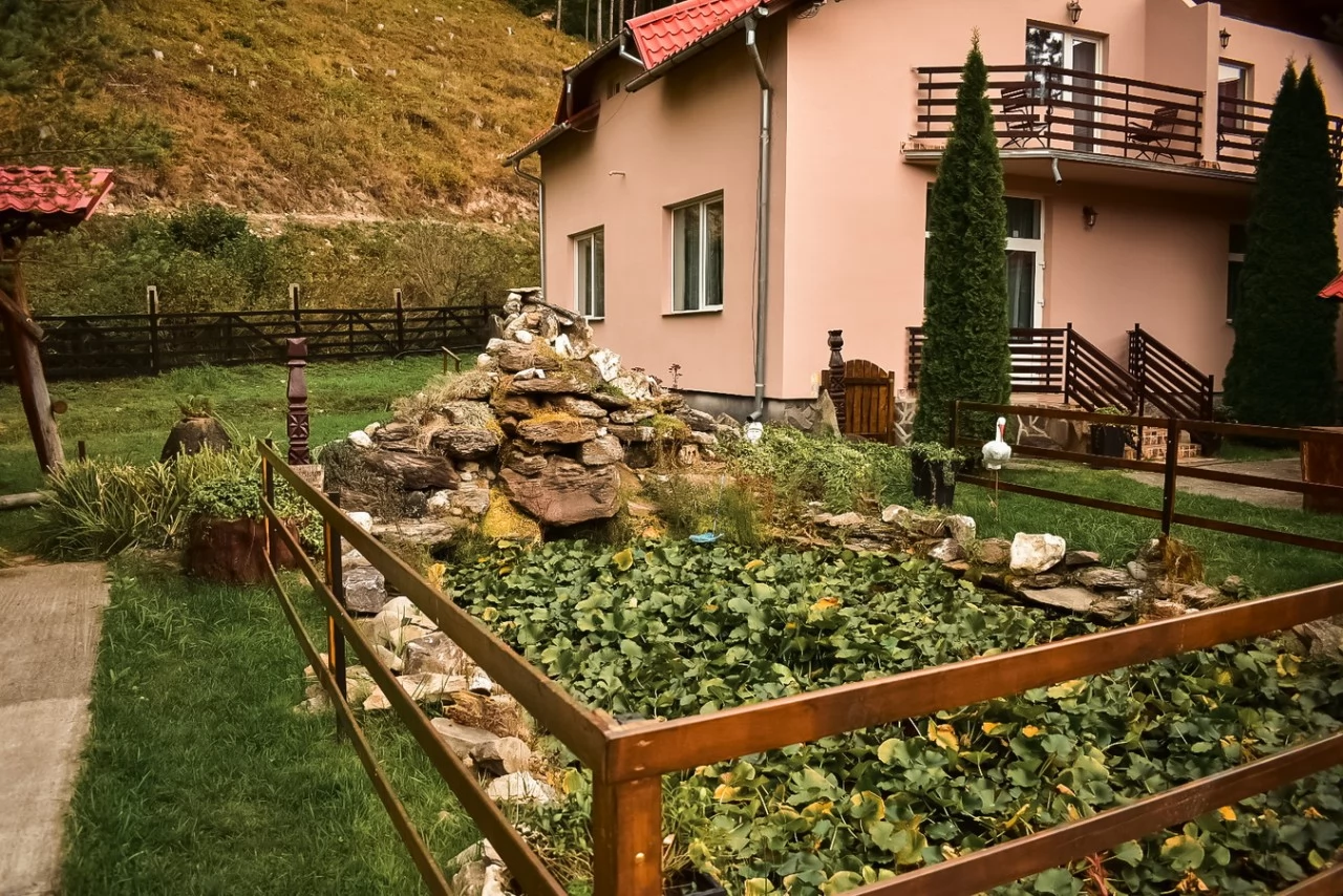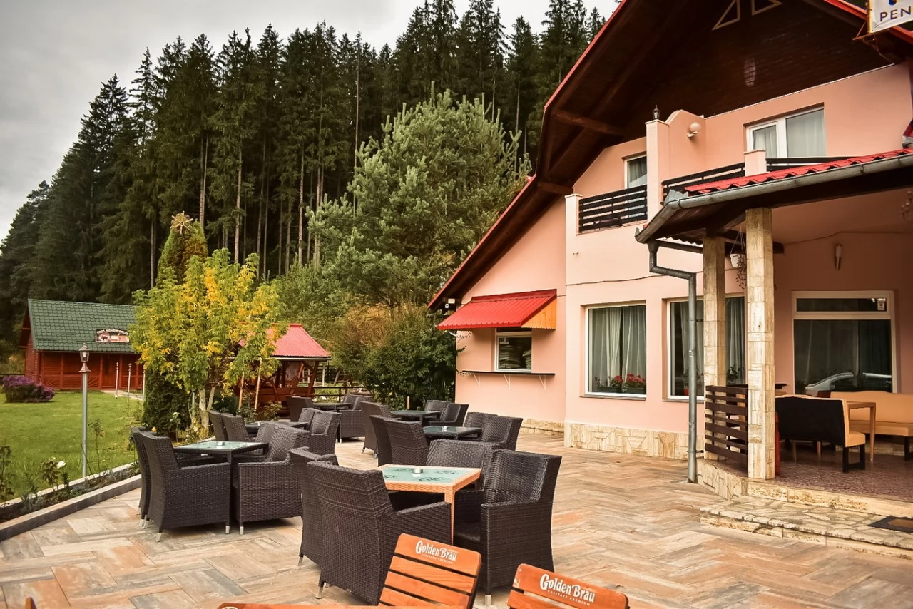 Szállás Maroshévíz Panzió*** | Erdő szélen tisztáson, Étterem, bár, terasz, kert-udvar, filagória, hinta, grill, halastó, gyerek-játszótér, parkoló | 500m Termál-vízesés, 2km Bánffy-fürdő, 4km Maroshévizi-sípálya