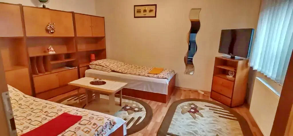 - Benne 2 külön bejáratú kétszemélyes szoba 1-1 pótággyal, 1 közös fürdőszoba és egy kis konyha