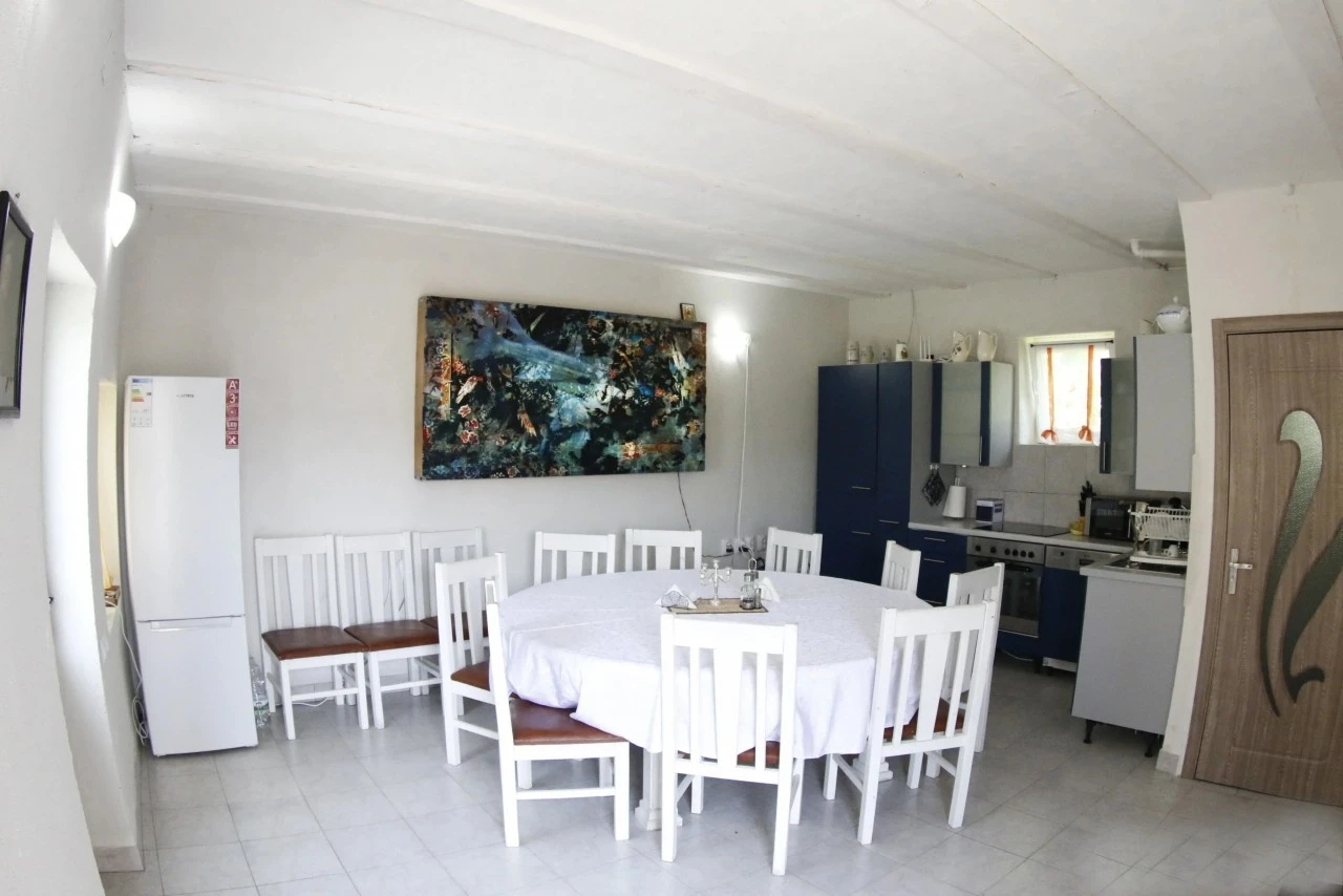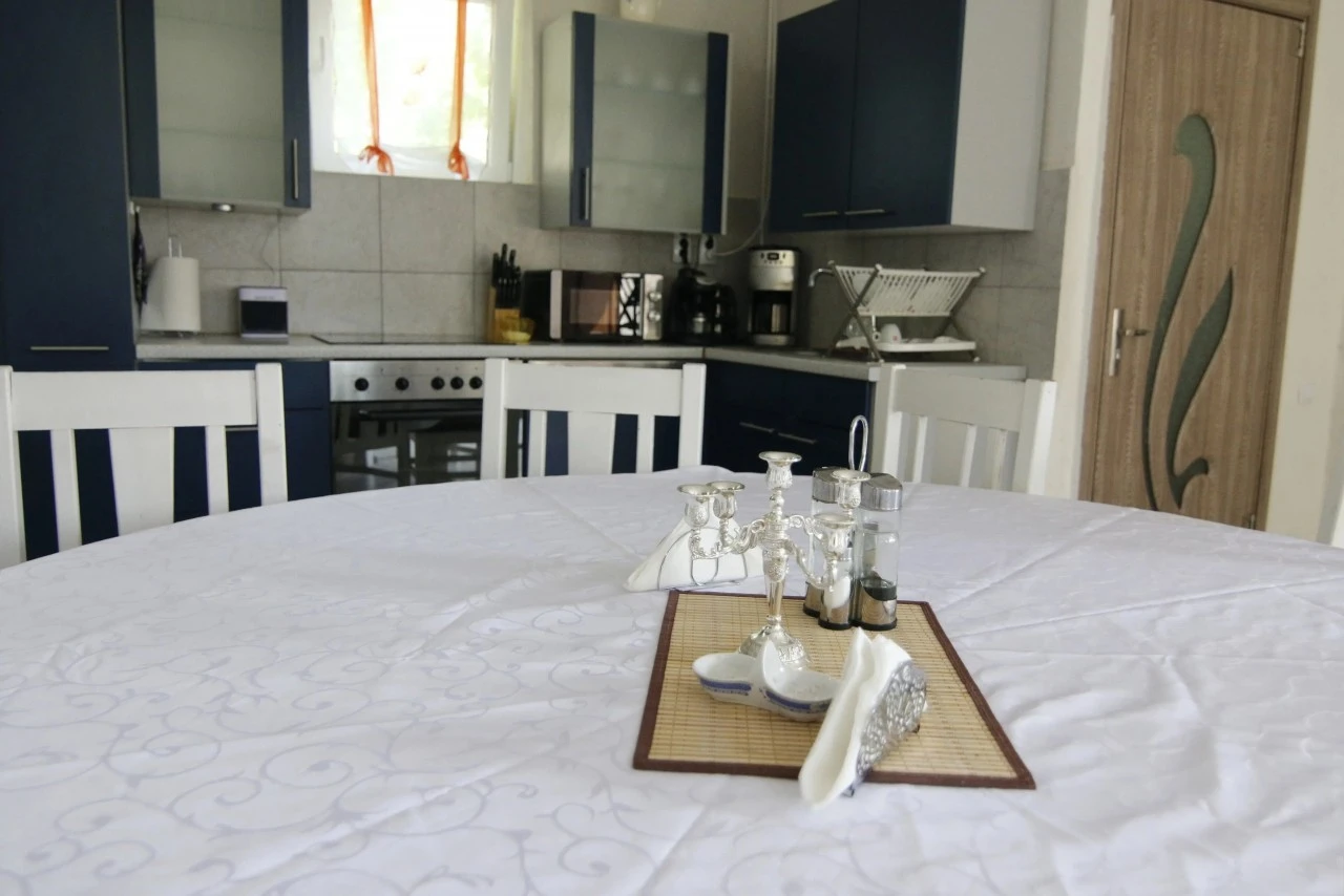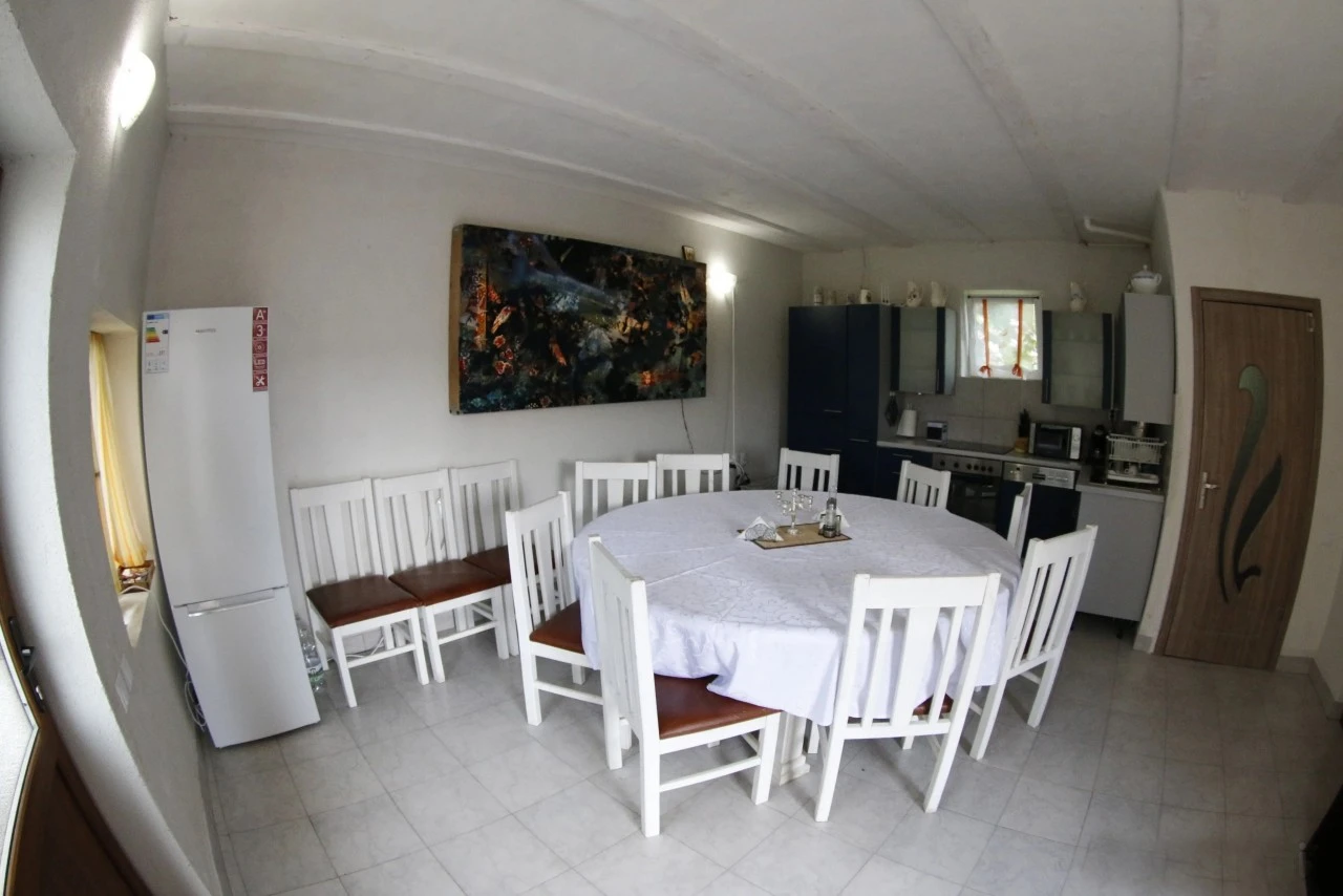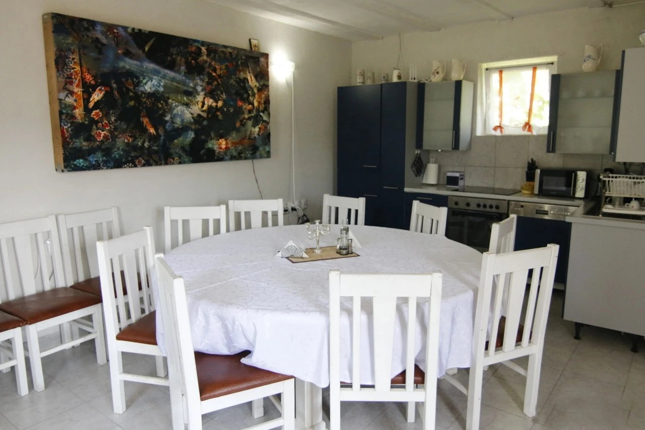 A vendégek számára teljesen felszerelt közös konyha áll rendelkezésre, ahol saját ételeiket elkészíthetik. A szabadtéri étkezőhely és a kert ideális közös étkezésekhez, grillezéshez vagy bográcsozáshoz. A környék hagyományos ízei a közeli településeken is felfedezhetők.