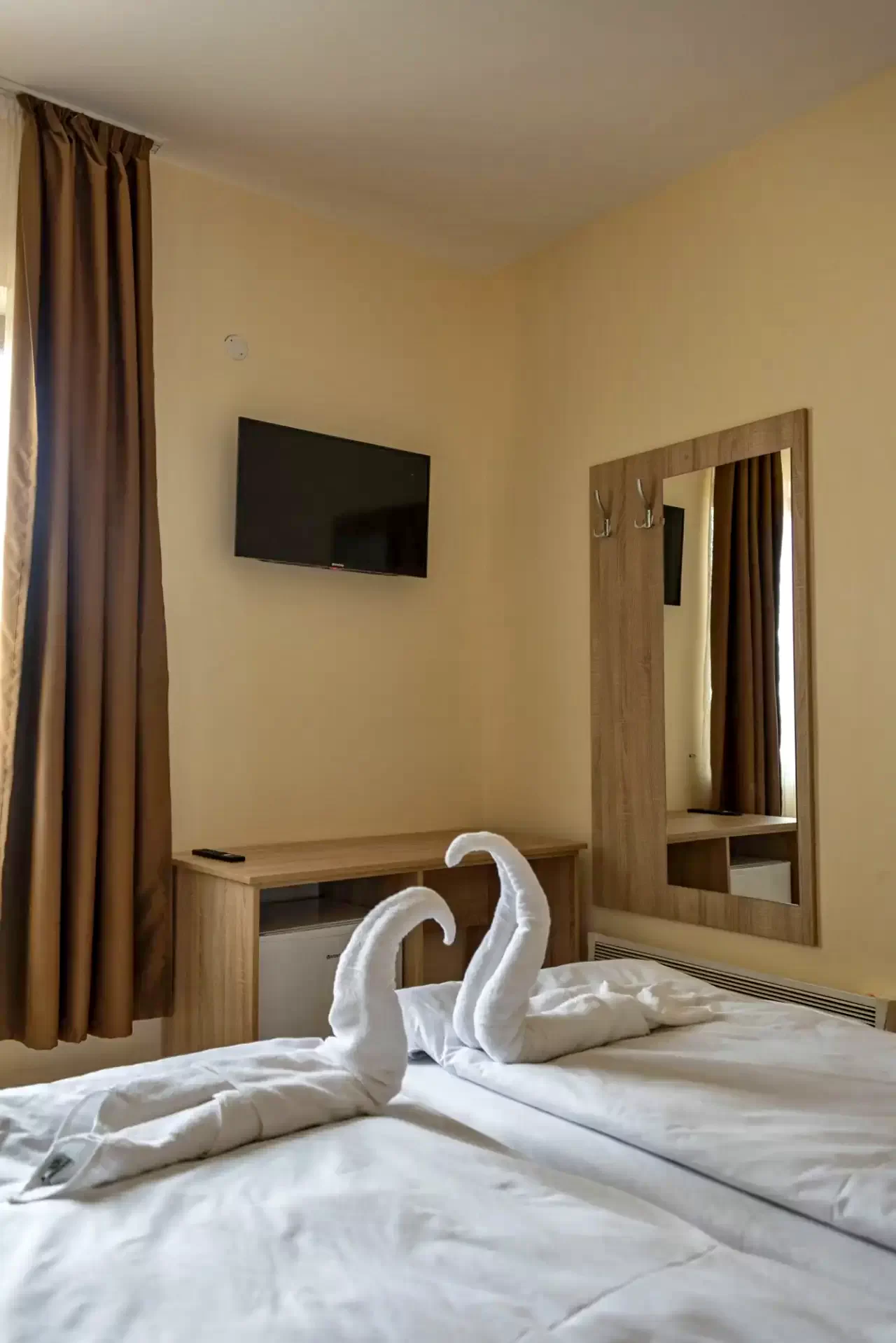 - Két és 3 személyes modern, igényesen berendezett szobái mindenikéhez saját fürdőszoba tartozik, valamint okos tv-vel és mini bárral felszereltek.