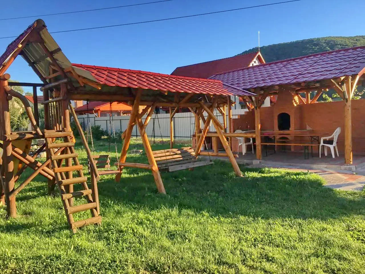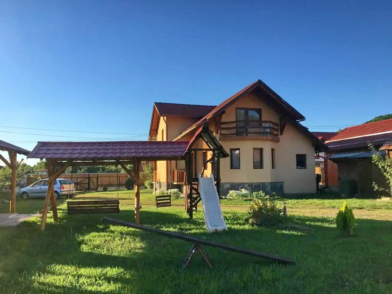 - A nagyfelületű parkosított udvar rendkivül alakalmas a szababdidős tevékenységek (kinti sütögetés - grill, barbeque), lebonyolítására, mig a gyerekeknek szépen kialakított praktikus játszótér áll a rendelkezésére.