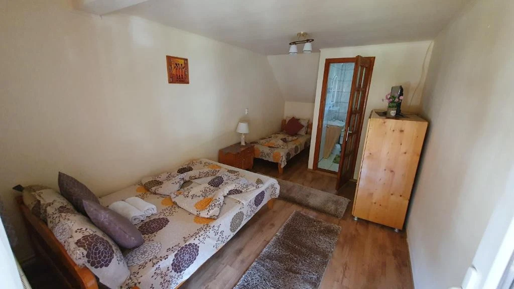 - Szoba (1 db franciaágy és 1 db egyszemélyes ágy),
