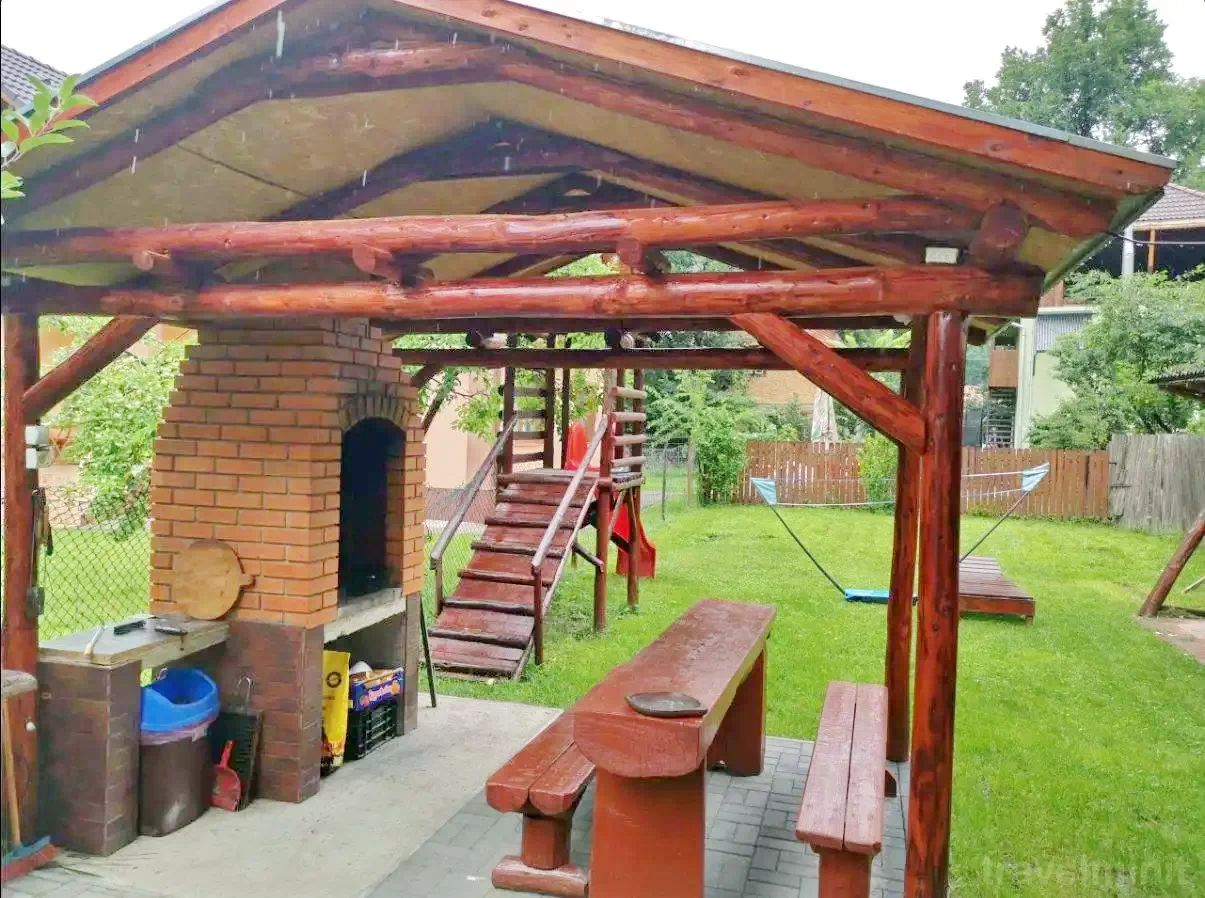 - Az étkező, nappali, a tágas és parkosított udvar - pavilonnal, grill, bogrács lehetőséggel, gyermekek számára kialakított játszótérrel, valamint térfigyelő kamerákkal őrzött parkolóval a gyerekes családok, fiatal párok, illetve baráti társaságok kedvenc tartózkodási helye.