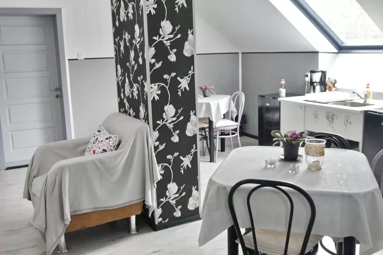 Modern és felszerelt konyhával, valamint étkező-nappali lehetőséggel rendelkezik.
